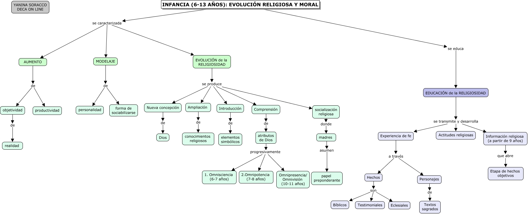 Este Cmap, tiene información relacionada con: Evolución religiosa y moral_ Infancia, MODELAJE de personalidad, Hechos son Bíblicos, AUMENTO de objetividad, INFANCIA (6-13 AÑOS): EVOLUCIÓN RELIGIOSA Y MORAL se caracterizada AUMENTO, Nueva concepción de Dios, atributos de Dios progresivamente Omnipresencia/ Omnivisión (10-11 años), madres asumen papel preponderante, EVOLUCIÓN de la RELIGIOSIDAD se produce Comprensión, AUMENTO de productividad, Información religiosa (a partir de 9 años) que abre Etapa de hechos objetivos, EVOLUCIÓN de la RELIGIOSIDAD se produce Ampliación, INFANCIA (6-13 AÑOS): EVOLUCIÓN RELIGIOSA Y MORAL se caracterizada MODELAJE, objetividad de realidad, EVOLUCIÓN de la RELIGIOSIDAD se produce socialización religiosa, Experiencia de fe a través Personajes, EVOLUCIÓN de la RELIGIOSIDAD se produce Nueva concepción, Introducción de elementos simbólicos, EDUCACIÓN de la RELIGIOSIDAD se transmite y desarrolla Experiencia de fe, EVOLUCIÓN de la RELIGIOSIDAD se produce Introducción, Hechos son Eclesiales