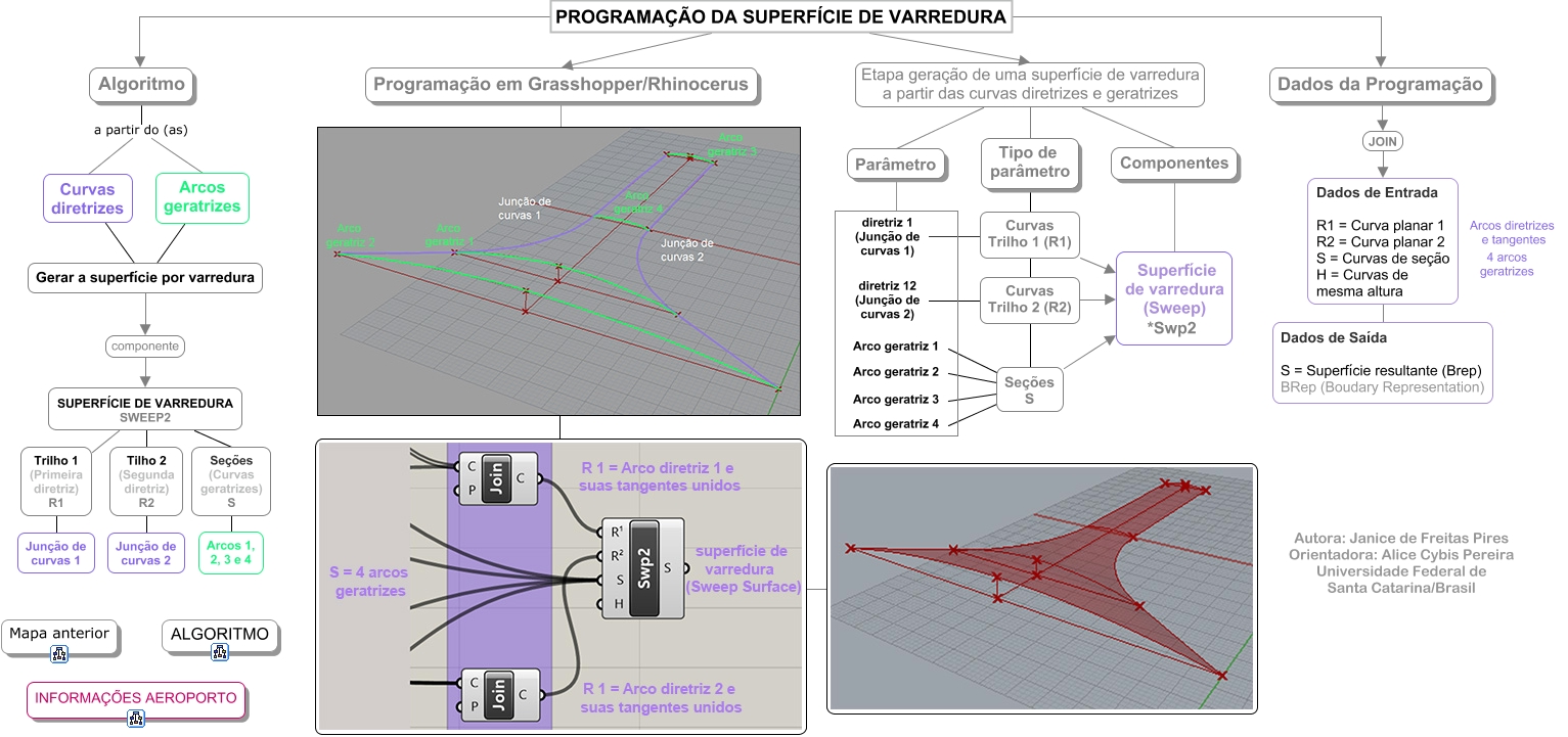 Esse mapa conceitual, produzido no IHMC CmapTools, tem a informação relacionada a: programação_superf_varredura, Curvas Trilho 1 (R1) Curvas Trilho 2 (R2), Tilho 2 (Segunda diretriz) R2 Junção de curvas 2, Arco geratriz 2 Seções S, Parâmetro, Algoritmo a partir do (as) Curvas diretrizes, PROGRAMAÇÃO DA SUPERFÍCIE DE VARREDURA Dados da Programação, PROGRAMAÇÃO DA SUPERFÍCIE DE VARREDURA Etapa geração de uma superfície de varredura a partir das curvas diretrizes e geratrizes Componentes, SUPERFÍCIE DE VARREDURA SWEEP2 Seções (Curvas geratrizes) S, Gerar a superfície por varredura componente SUPERFÍCIE DE VARREDURA SWEEP2, PROGRAMAÇÃO DA SUPERFÍCIE DE VARREDURA Etapa geração de uma superfície de varredura a partir das curvas diretrizes e geratrizes Parâmetro, Seções S Superfície de varredura (Sweep) *Swp2, Tipo de parâmetro Curvas Trilho 1 (R1), PROGRAMAÇÃO DA SUPERFÍCIE DE VARREDURA Etapa geração de uma superfície de varredura a partir das curvas diretrizes e geratrizes Tipo de parâmetro, Seções (Curvas geratrizes) S Arcos 1, 2, 3 e 4, SUPERFÍCIE DE VARREDURA SWEEP2 Tilho 2 (Segunda diretriz) R2, diretriz 12 (Junção de curvas 2) Curvas Trilho 2 (R2), Algoritmo a partir do (as) Arcos geratrizes, Curvas Trilho 1 (R1) Superfície de varredura (Sweep) *Swp2, Dados de Entrada R1 = Curva planar 1 R2 = Curva planar 2 S = Curvas de seção H = Curvas de mesma altura Dados de Saída S = Superfície resultante (Brep) BRep (Boudary Representation), PROGRAMAÇÃO DA SUPERFÍCIE DE VARREDURA Programação em Grasshopper/Rhinocerus