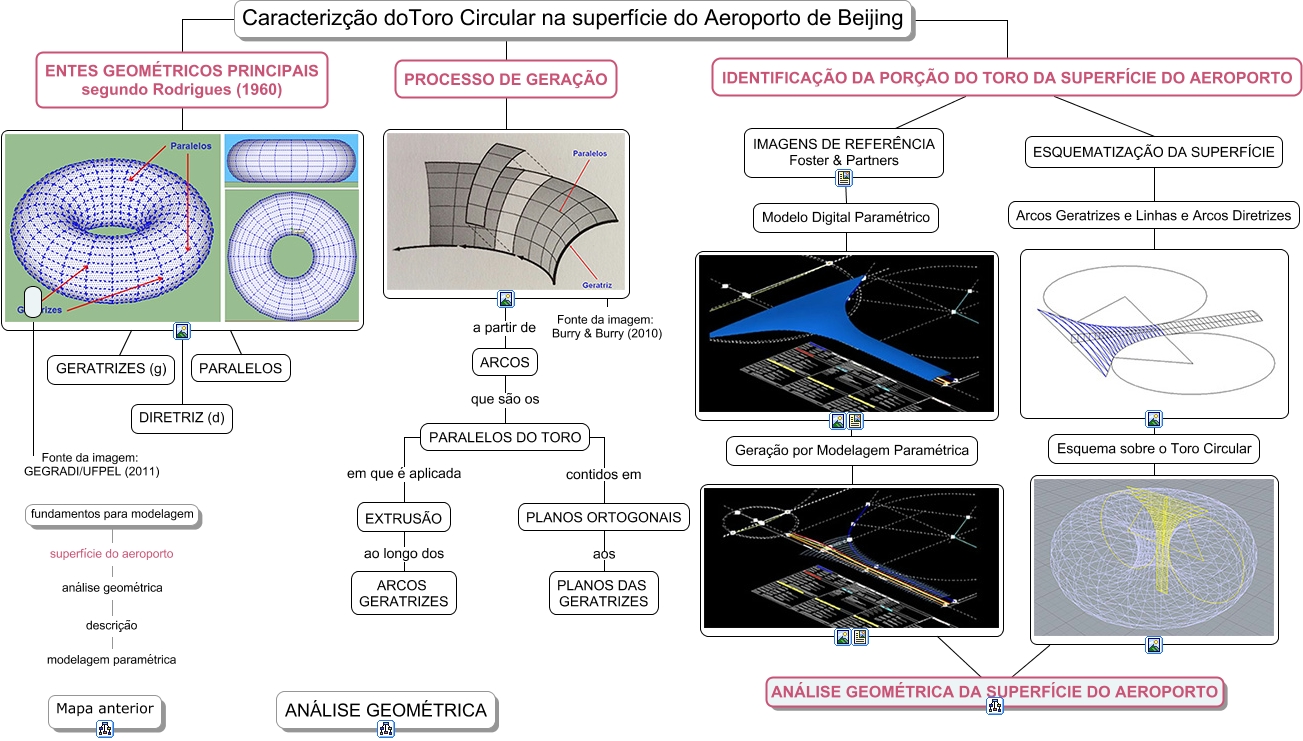 Esse mapa conceitual, produzido no IHMC CmapTools, tem a informação relacionada a: caracterizacao_toro_aeroporto, Esquema sobre o Toro Circular, IMAGENS DE REFERÊNCIA Foster & Partners Modelo Digital Paramétrico, ANÁLISE GEOMÉTRICA DA SUPERFÍCIE DO AEROPORTO, IDENTIFICAÇÃO DA PORÇÃO DO TORO DA SUPERFÍCIE DO AEROPORTO ESQUEMATIZAÇÃO DA SUPERFÍCIE, Esquema sobre o Toro Circular, ARCOS que são os PARALELOS DO TORO, ENTES GEOMÉTRICOS PRINCIPAIS segundo Rodrigues (1960), Modelo Digital Paramétrico, ANÁLISE GEOMÉTRICA DA SUPERFÍCIE DO AEROPORTO, PARALELOS DO TORO contidos em PLANOS ORTOGONAIS, fundamentos para modelagem superfície do aeroporto, descrição modelagem paramétrica, PROCESSO DE GERAÇÃO, PLANOS ORTOGONAIS aos PLANOS DAS GERATRIZES, Fonte da imagem: GEGRADI/UFPEL (2011), Fonte da imagem: Burry & Burry (2010), análise geométrica descrição, ESQUEMATIZAÇÃO DA SUPERFÍCIE Arcos Geratrizes e Linhas e Arcos Diretrizes, PROCESSO DE GERAÇÃO, Geração por Modelagem Paramétrica