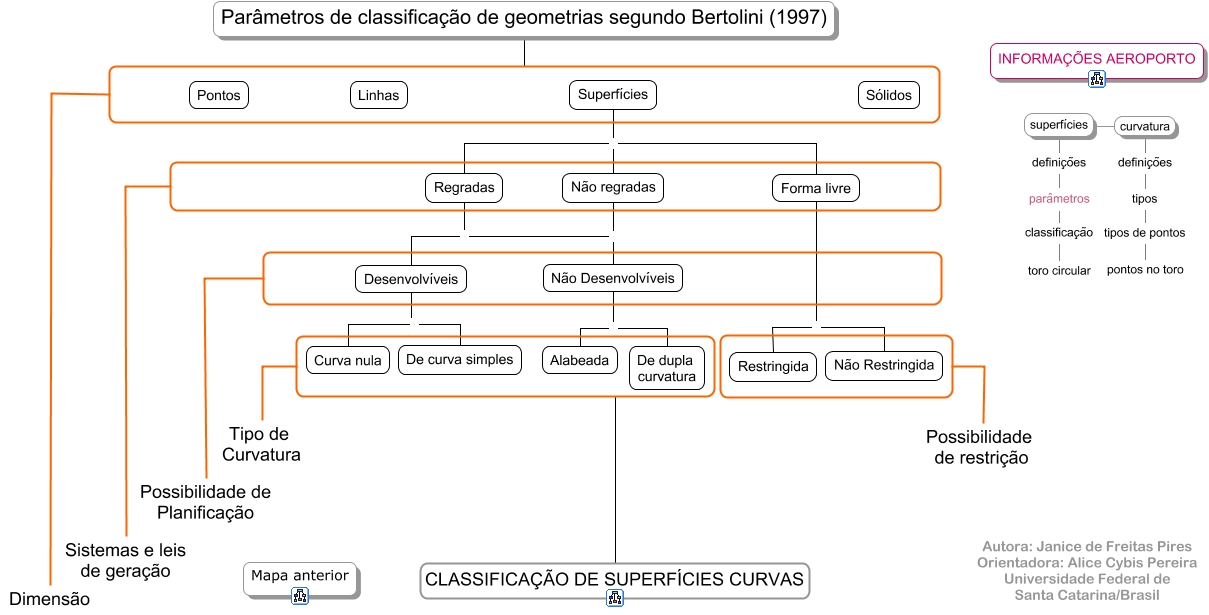 Esse mapa conceitual, produzido no IHMC CmapTools, tem a informação relacionada a: parametros_classificação_geometrias, Dimensão, superfícies definições, parâmetros classificação, 1 De dupla curvatura, 1 Curva nula, 1 Regradas, curvatura definições, 1 Forma livre, Possibilidade de Planificação, classificação toro circular, Parâmetros de classificação de geometrias segundo Bertolini (1997), Tipo de Curvatura, Não Desenvolvíveis 1, tipos tipos de pontos, 1 De curva simples, 1 Alabeada, Forma livre 1, 1 Não regradas, Superfícies 1, 1 Não Desenvolvíveis