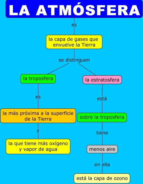 Este Cmap, tiene información relacionada con: La atmósfera, la troposfera es la más próxima a la superficie de la Tierra, LA ATMÓSFERA es la capa de gases que envuelve la Tierra, sobre la troposfera tiene menos aire, la más próxima a la superficie de la Tierra y la que tiene más oxígeno y vapor de agua, la capa de gases que envuelve la Tierra se distinguen la estratosfera, menos aire en ella está la capa de ozono, la estratosfera está sobre la troposfera, la capa de gases que envuelve la Tierra se distinguen la troposfera
