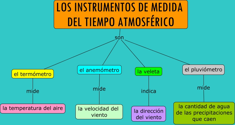 Este Cmap, tiene información relacionada con: Los instrumentos de medida del tiempo atmosférico, LOS INSTRUMENTOS DE MEDIDA DEL TIEMPO ATMOSFÉRICO son el pluviómetro, LOS INSTRUMENTOS DE MEDIDA DEL TIEMPO ATMOSFÉRICO son el termómetro, el termómetro mide la temperatura del aire, la veleta indica la dirección del viento, el pluviómetro mide la cantidad de agua de las precipitaciones que caen, el anemómetro mide la velocidad del viento, LOS INSTRUMENTOS DE MEDIDA DEL TIEMPO ATMOSFÉRICO son el anemómetro, LOS INSTRUMENTOS DE MEDIDA DEL TIEMPO ATMOSFÉRICO son la veleta