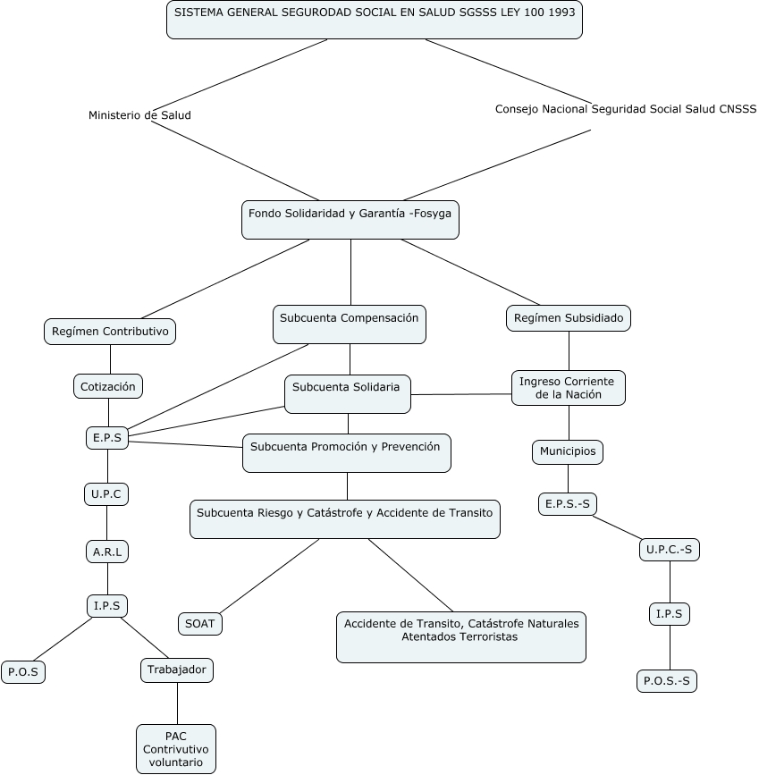 Este Cmap, tiene información relacionada con: Legislación En Salud, Subcuenta Riesgo y Catástrofe y Accidente de Transito ???? SOAT, Subcuenta Compensación ???? Subcuenta Solidaria, Subcuenta Solidaria ???? Ingreso Corriente de la Nación, Regímen Subsidiado ???? Ingreso Corriente de la Nación, Fondo Solidaridad y Garantía -Fosyga ???? Regímen Contributivo, Subcuenta Solidaria ???? E.P.S, Subcuenta Compensación ???? E.P.S, SISTEMA GENERAL SEGURODAD SOCIAL EN SALUD SGSSS LEY 100 1993 Consejo Nacional Seguridad Social Salud CNSSS Fondo Solidaridad y Garantía -Fosyga, U.P.C.-S ???? I.P.S, Subcuenta Promoción y Prevención ???? Subcuenta Riesgo y Catástrofe y Accidente de Transito, Fondo Solidaridad y Garantía -Fosyga ???? Subcuenta Compensación, E.P.S ???? U.P.C, Subcuenta Promoción y Prevención ???? E.P.S, Subcuenta Riesgo y Catástrofe y Accidente de Transito ???? Accidente de Transito, Catástrofe Naturales Atentados Terroristas, Cotización ???? E.P.S, I.P.S ???? P.O.S, E.P.S.-S ???? U.P.C.-S, Regímen Contributivo ???? Cotización, A.R.L ???? I.P.S, SISTEMA GENERAL SEGURODAD SOCIAL EN SALUD SGSSS LEY 100 1993 Ministerio de Salud Regímen Subsidiado
