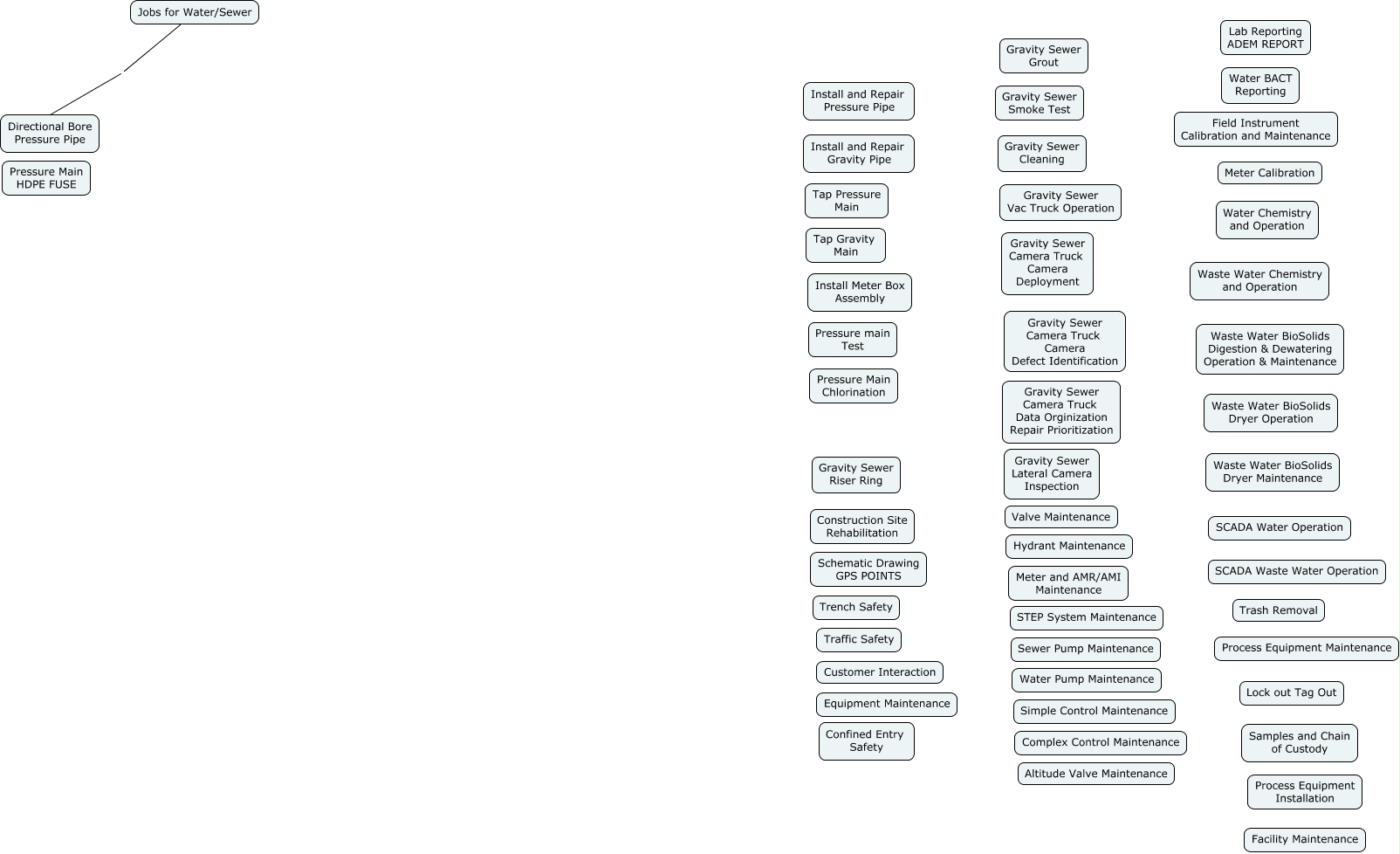 This Concept Map, created with IHMC CmapTools, has information related to: W & WW Tasks, Jobs for Water/Sewer Directional Bore Pressure Pipe