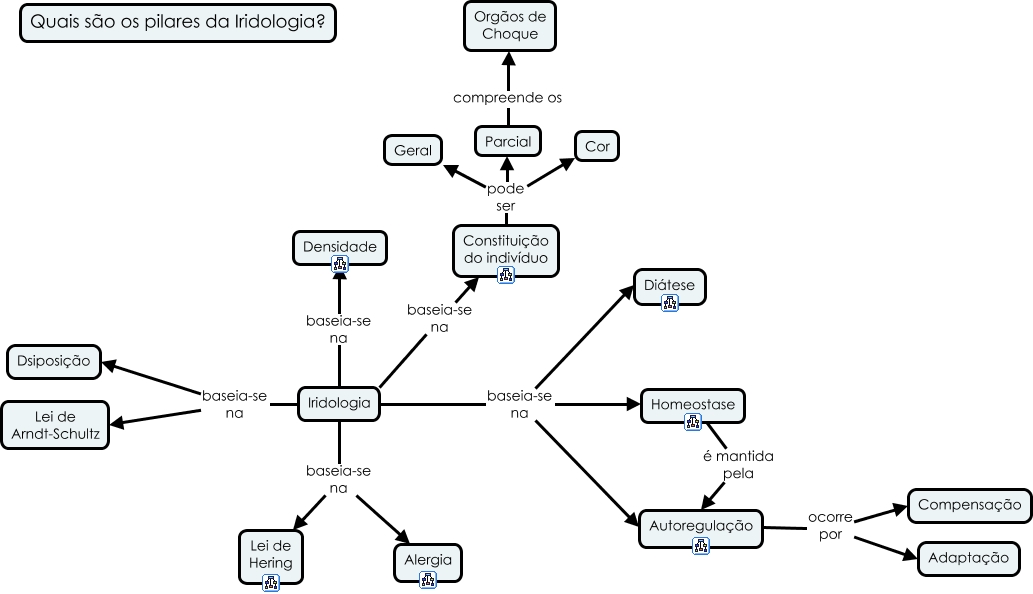 Esse mapa conceitual, produzido no IHMC CmapTools, tem a informação relacionada a: Quais são os pilares da Iridologia, Iridologia baseia-se na Alergia, Iridologia baseia-se na Densidade, Autoregulação ocorre por Compensação, Constituição do indivíduo pode ser Geral, Iridologia baseia-se na Constituição do indivíduo, Iridologia baseia-se na Diátese, Iridologia baseia-se na Homeostase, Iridologia baseia-se na Lei de Arndt-Schultz, Parcial compreende os Orgãos de Choque, Homeostase é mantida pela Autoregulação, Constituição do indivíduo pode ser Parcial, Autoregulação ocorre por Adaptação, Iridologia baseia-se na Autoregulação, Iridologia baseia-se na Dsiposição, Iridologia baseia-se na Lei de Hering, Constituição do indivíduo pode ser Cor