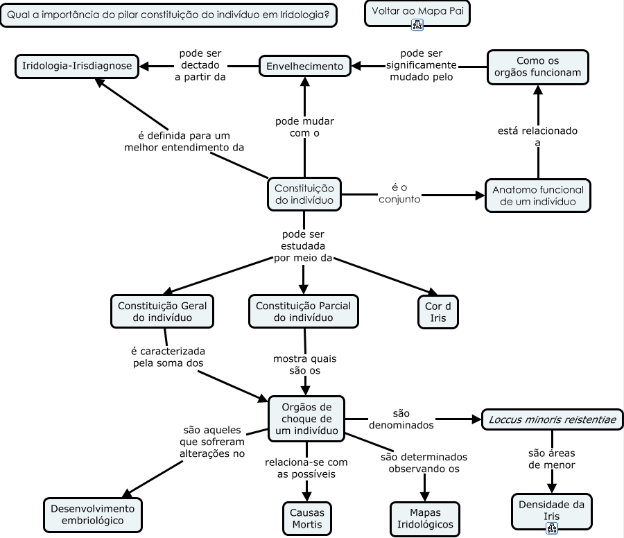 Esse mapa conceitual, produzido no IHMC CmapTools, tem a informação relacionada a: Qual a importância do Pilar constituição do indivíduo, Constituição Parcial do indivíduo mostra quais são os Orgãos de choque de um indivíduo, Constituição do indivíduo pode ser estudada por meio da Cor d Iris, Constituição do indivíduo pode ser estudada por meio da Constituição Parcial do indivíduo, Constituição do indivíduo é definida para um melhor entendimento da Iridologia-Irisdiagnose, Orgãos de choque de um indivíduo relaciona-se com as possíveis Causas Mortis, Orgãos de choque de um indivíduo são aqueles que sofreram alterações no Desenvolvimento embriológico, Constituição do indivíduo pode mudar com o Envelhecimento, Envelhecimento pode ser dectado a partir da Iridologia-Irisdiagnose, Anatomo funcional de um indivíduo está relacionado a Como os orgãos funcionam, Constituição do indivíduo pode ser estudada por meio da Constituição Geral do indivíduo, Como os orgãos funcionam pode ser significamente mudado pelo Envelhecimento, Orgãos de choque de um indivíduo são denominados Loccus minoris reistentiae, Constituição do indivíduo é o conjunto Anatomo funcional de um indivíduo, Orgãos de choque de um indivíduo são determinados observando os Mapas Iridológicos, Constituição Geral do indivíduo é caracterizada pela soma dos Orgãos de choque de um indivíduo, Loccus minoris reistentiae são áreas de menor Densidade da Iris