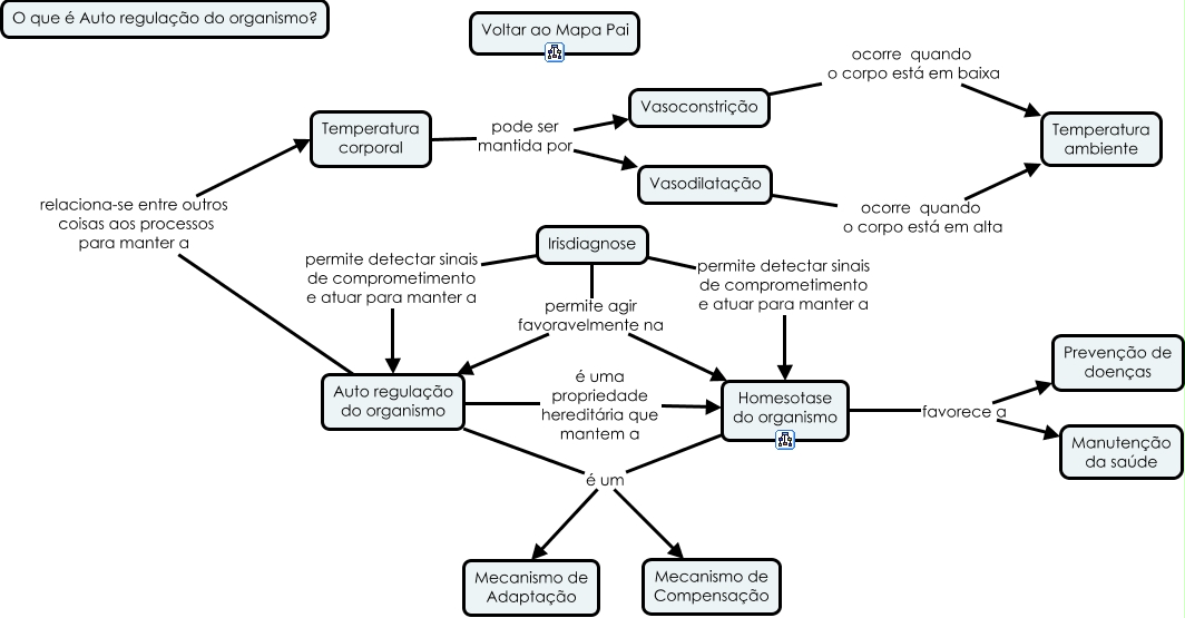 Esse mapa conceitual, produzido no IHMC CmapTools, tem a informação relacionada a: O que é Auto regulação, Vasodilatação ocorre quando o corpo está em alta Temperatura ambiente, Irisdiagnose permite agir favoravelmente na Auto regulação do organismo, Irisdiagnose permite agir favoravelmente na Homesotase do organismo, Irisdiagnose permite detectar sinais de comprometimento e atuar para manter a Homesotase do organismo, Auto regulação do organismo é uma propriedade hereditária que mantem a Homesotase do organismo, Auto regulação do organismo é um Mecanismo de Adaptação, Irisdiagnose permite detectar sinais de comprometimento e atuar para manter a Auto regulação do organismo, Auto regulação do organismo relaciona-se entre outros coisas aos processos para manter a Temperatura corporal, Homesotase do organismo favorece a Manutenção da saúde, Vasoconstrição ocorre quando o corpo está em baixa Temperatura ambiente, Temperatura corporal pode ser mantida por Vasoconstrição, Homesotase do organismo é um Mecanismo de Adaptação, Homesotase do organismo é um Mecanismo de Compensação, Auto regulação do organismo é um Mecanismo de Compensação, Homesotase do organismo favorece a Prevenção de doenças, Temperatura corporal pode ser mantida por Vasodilatação
