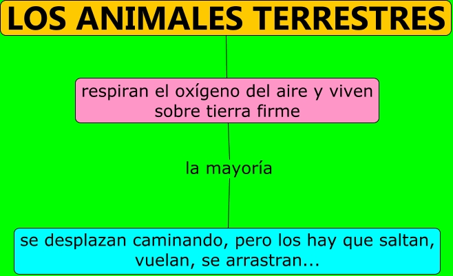 Este Cmap, tiene información relacionada con: Los animales terrestres, respiran el oxígeno del aire y viven sobre tierra firme la mayoría se desplazan caminando, pero los hay que saltan, vuelan, se arrastran..., LOS ANIMALES TERRESTRES respiran el oxígeno del aire y viven sobre tierra firme