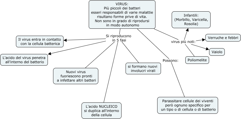 Questa Cmap, creata con IHMC CmapTools, contiene informazioni relative a: mappa virus, VIRUS: Più piccoli dei batteri esseri responsabili di varie malattie risultano forme prive di vita. Non sono in grado di riprodursi in modo autonomo Possono: Parassitare cellule dei viventi però ognuno specifico per un tipo o di cellula o di batterio, VIRUS: Più piccoli dei batteri esseri responsabili di varie malattie risultano forme prive di vita. Non sono in grado di riprodursi in modo autonomo virus più noti: Vaiolo, VIRUS: Più piccoli dei batteri esseri responsabili di varie malattie risultano forme prive di vita. Non sono in grado di riprodursi in modo autonomo virus più noti: Poliomelite, VIRUS: Più piccoli dei batteri esseri responsabili di varie malattie risultano forme prive di vita. Non sono in grado di riprodursi in modo autonomo Si riproducono in 5 fasi L'acido NUCLEICO si duplica all'interno della cellula, VIRUS: Più piccoli dei batteri esseri responsabili di varie malattie risultano forme prive di vita. Non sono in grado di riprodursi in modo autonomo Si riproducono in 5 fasi si formano nuovi involucri virali, VIRUS: Più piccoli dei batteri esseri responsabili di varie malattie risultano forme prive di vita. Non sono in grado di riprodursi in modo autonomo Si riproducono in 5 fasi Il virus entra in contatto con la cellula batterica, VIRUS: Più piccoli dei batteri esseri responsabili di varie malattie risultano forme prive di vita. Non sono in grado di riprodursi in modo autonomo virus più noti: Infantili: (Morbillo, Varicella, Rosolia), VIRUS: Più piccoli dei batteri esseri responsabili di varie malattie risultano forme prive di vita. Non sono in grado di riprodursi in modo autonomo Si riproducono in 5 fasi L'acido del virus penetra all'interno del batterio, VIRUS: Più piccoli dei batteri esseri responsabili di varie malattie risultano forme prive di vita. Non sono in grado di riprodursi in modo autonomo virus più noti: Verruche e febbri, VIRUS: Più piccoli dei batteri esseri responsabili di varie malattie risultano forme prive di vita. Non sono in grado di riprodursi in modo autonomo Si riproducono in 5 fasi Nuovi virus fuoriescono pronti a infettare altri batteri