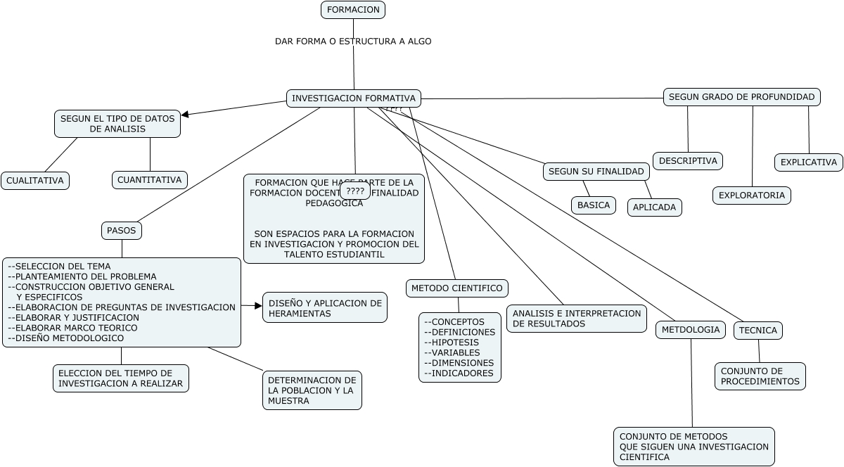 Este Cmap, tiene información relacionada con: MAPA RAI, SEGUN GRADO DE PROFUNDIDAD ???? EXPLORATORIA, INVESTIGACION FORMATIVA ???? ANALISIS E INTERPRETACION DE RESULTADOS, SEGUN GRADO DE PROFUNDIDAD ???? DESCRIPTIVA, INVESTIGACION FORMATIVA ???? PASOS, SEGUN GRADO DE PROFUNDIDAD ???? EXPLICATIVA, SEGUN EL TIPO DE DATOS DE ANALISIS ???? CUALITATIVA, SEGUN SU FINALIDAD ???? APLICADA, TECNICA ???? CONJUNTO DE PROCEDIMIENTOS, INVESTIGACION FORMATIVA ???? SEGUN EL TIPO DE DATOS DE ANALISIS, SEGUN SU FINALIDAD ???? BASICA, FORMACION DAR FORMA O ESTRUCTURA A ALGO INVESTIGACION FORMATIVA, INVESTIGACION FORMATIVA ???? SEGUN SU FINALIDAD, INVESTIGACION FORMATIVA ???? ????, INVESTIGACION FORMATIVA ???? TECNICA, PASOS ???? --SELECCION DEL TEMA --PLANTEAMIENTO DEL PROBLEMA --CONSTRUCCION OBJETIVO GENERAL Y ESPECIFICOS --ELABORACION DE PREGUNTAS DE INVESTIGACION --ELABORAR Y JUSTIFICACION --ELABORAR MARCO TEORICO --DISEÑO METODOLOGICO, --SELECCION DEL TEMA --PLANTEAMIENTO DEL PROBLEMA --CONSTRUCCION OBJETIVO GENERAL Y ESPECIFICOS --ELABORACION DE PREGUNTAS DE INVESTIGACION --ELABORAR Y JUSTIFICACION --ELABORAR MARCO TEORICO --DISEÑO METODOLOGICO ???? ELECCION DEL TIEMPO DE INVESTIGACION A REALIZAR, INVESTIGACION FORMATIVA ???? SEGUN GRADO DE PROFUNDIDAD, INVESTIGACION FORMATIVA ???? METDOLOGIA, METDOLOGIA ???? CONJUNTO DE METODOS QUE SIGUEN UNA INVESTIGACION CIENTIFICA, --SELECCION DEL TEMA --PLANTEAMIENTO DEL PROBLEMA --CONSTRUCCION OBJETIVO GENERAL Y ESPECIFICOS --ELABORACION DE PREGUNTAS DE INVESTIGACION --ELABORAR Y JUSTIFICACION --ELABORAR MARCO TEORICO --DISEÑO METODOLOGICO ???? DISEÑO Y APLICACION DE HERAMIENTAS