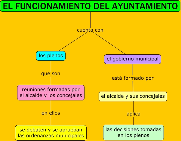 Este Cmap, tiene información relacionada con: El funcionamiento del ayuntamiento, el alcalde y sus concejales aplica las decisiones tomadas en los plenos, EL FUNCIONAMIENTO DEL AYUNTAMIENTO cuenta con el gobierno municipal, reuniones formadas por el alcalde y los concejales en ellos se debaten y se aprueban las ordenanzas municipales, los plenos que son reuniones formadas por el alcalde y los concejales, el gobierno municipal está formado por el alcalde y sus concejales, EL FUNCIONAMIENTO DEL AYUNTAMIENTO cuenta con los plenos