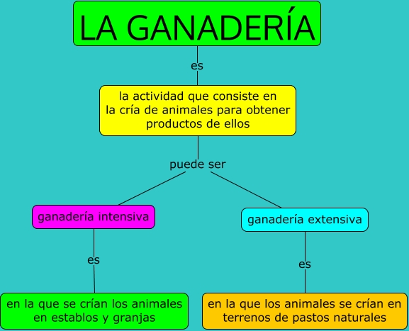 Este Cmap, tiene información relacionada con: La ganadería, ganadería intensiva es en la que se crían los animales en establos y granjas, ganadería extensiva es en la que los animales se crían en terrenos de pastos naturales, la actividad que consiste en la cría de animales para obtener productos de ellos puede ser ganadería intensiva, la actividad que consiste en la cría de animales para obtener productos de ellos puede ser ganadería extensiva, LA GANADERÍA es la actividad que consiste en la cría de animales para obtener productos de ellos