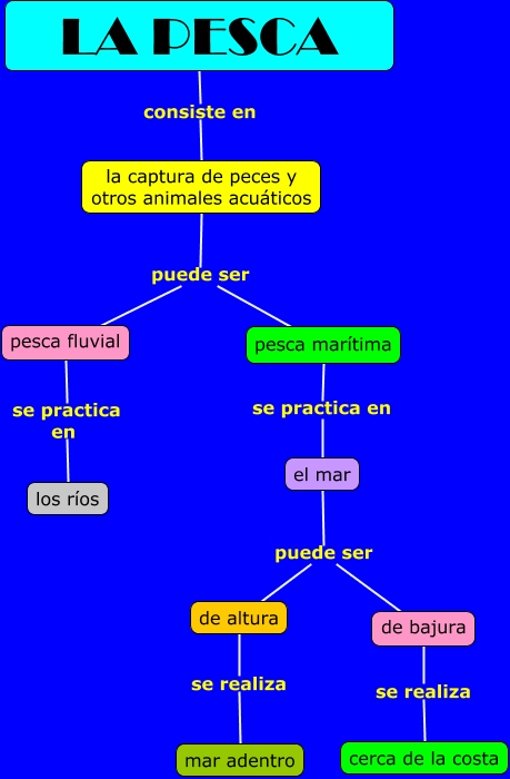 Este Cmap, tiene información relacionada con: La pesca, el mar puede ser de altura, la captura de peces y otros animales acuáticos puede ser pesca fluvial, de bajura se realiza cerca de la costa, el mar puede ser de bajura, LA PESCA consiste en la captura de peces y otros animales acuáticos, pesca fluvial se practica en los ríos, de altura se realiza mar adentro, la captura de peces y otros animales acuáticos puede ser pesca marítima, pesca marítima se practica en el mar