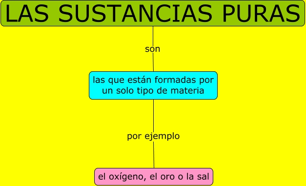 Este Cmap, tiene información relacionada con: Las sustancias puras, las que están formadas por un solo tipo de materia por ejemplo el oxígeno, el oro o la sal, LAS SUSTANCIAS PURAS son las que están formadas por un solo tipo de materia