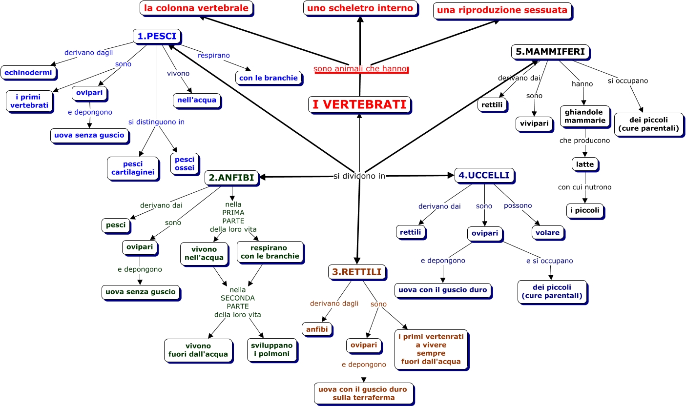 Questa Cmap, creata con IHMC CmapTools, contiene informazioni relative a: VERTEBRATI, 3.RETTILI derivano dagli anfibi, ovipari e depongono uova senza guscio, 4.UCCELLI derivano dai rettili, 5.MAMMIFERI derivano dai rettili, 1.PESCI sono i primi vertebrati, 1.PESCI sono ovipari, 1.PESCI respirano con le branchie, ovipari e si occupano dei piccoli (cure parentali), ovipari e depongono uova con il guscio duro, 5.MAMMIFERI si occupano dei piccoli (cure parentali), I VERTEBRATI sono animali che hanno una riproduzione sessuata, 4.UCCELLI sono ovipari, respirano con le branchie nella SECONDA PARTE della loro vita vivono fuori dall'acqua, vivono nell'acqua nella SECONDA PARTE della loro vita vivono fuori dall'acqua, 1.PESCI derivano dagli echinodermi, 5.MAMMIFERI hanno ghiandole mammarie, 1.PESCI si distinguono in pesci cartilaginei, I VERTEBRATI sono animali che hanno uno scheletro interno, 2.ANFIBI derivano dai pesci, 5.MAMMIFERI sono vivipari