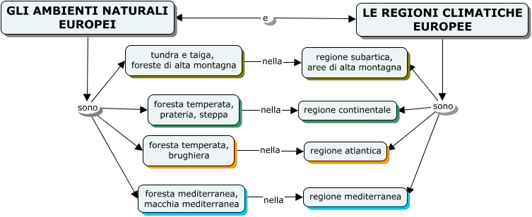Questa Cmap, creata con IHMC CmapTools, contiene informazioni relative a: Ambienti naturali in Europa, LE REGIONI CLIMATICHE EUROPEE sono regione atlantica, LE REGIONI CLIMATICHE EUROPEE sono regione continentale, foresta temperata, brughiera nella regione atlantica, GLI AMBIENTI NATURALI EUROPEI sono foresta temperata, brughiera, LE REGIONI CLIMATICHE EUROPEE sono regione mediterranea, tundra e taiga, foreste di alta montagna nella regione subartica, aree di alta montagna, GLI AMBIENTI NATURALI EUROPEI sono foresta mediterranea, macchia mediterranea, LE REGIONI CLIMATICHE EUROPEE sono regione subartica, aree di alta montagna, foresta mediterranea, macchia mediterranea nella regione mediterranea, GLI AMBIENTI NATURALI EUROPEI sono tundra e taiga, foreste di alta montagna, foresta temperata, prateria, steppa nella regione continentale, GLI AMBIENTI NATURALI EUROPEI sono foresta temperata, prateria, steppa