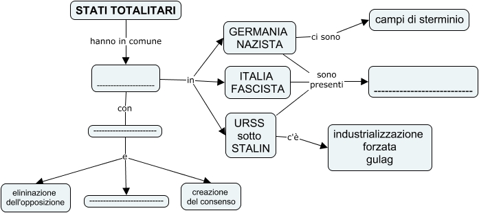 Questa Cmap, creata con IHMC CmapTools, contiene informazioni relative a: Stati totalitari 1, ITALIA FASCISTA sono presenti ---------------------------, ----------------------- e creazione del consenso, --------------------- in URSS sotto STALIN, STATI TOTALITARI hanno in comune ---------------------, --------------------- in GERMANIA NAZISTA, GERMANIA NAZISTA sono presenti ---------------------------, ----------------------- e ---------------------------, GERMANIA NAZISTA ci sono campi di sterminio, URSS sotto STALIN c'è industrializzazione forzata gulag, URSS sotto STALIN sono presenti ---------------------------, --------------------- con -----------------------, ----------------------- e elininazione dell'opposizione, --------------------- in ITALIA FASCISTA