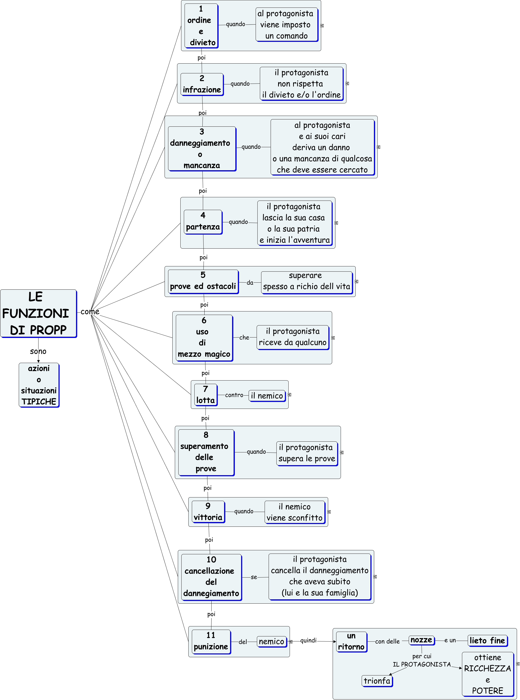 Questa Cmap, creata con IHMC CmapTools, contiene informazioni relative a: FUNZIONI di PROPP, LE FUNZIONI DI PROPP come ????, 5 prove ed ostacoli da superare spesso a richio dell vita, 3 danneggiamento o mancanza poi 4 partenza, LE FUNZIONI DI PROPP come ????, 8 superamento delle prove poi 9 vittoria, 7 lotta contro il nemico, 8 superamento delle prove quando il protagonista supera le prove, 1 ordine e divieto quando al protagonista viene imposto un comando, nozze e un lieto fine, un ritorno con delle nozze, LE FUNZIONI DI PROPP come ????, nozze per cui IL PROTAGONISTA ottiene RICCHEZZA e POTERE, 6 uso di mezzo magico poi 7 lotta, 2 infrazione poi 3 danneggiamento o mancanza, LE FUNZIONI DI PROPP come ????, LE FUNZIONI DI PROPP come ????, 10 cancellazione del dannegiamento poi 11 punizione, 7 lotta poi 8 superamento delle prove, 6 uso di mezzo magico che il protagonista riceve da qualcuno, 5 prove ed ostacoli poi 6 uso di mezzo magico