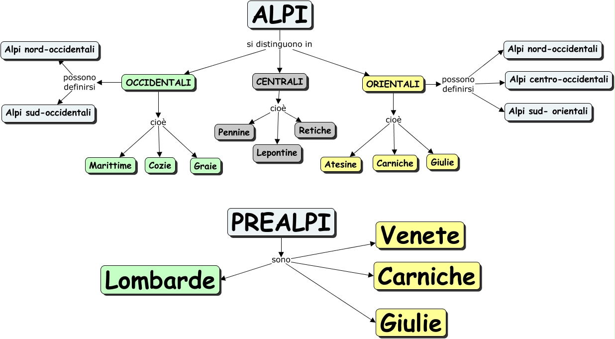Questa Cmap, creata con IHMC CmapTools, contiene informazioni relative a: Alpi e Prealpi, OCCIDENTALI cioè Cozie, ALPI si distinguono in OCCIDENTALI, ORIENTALI possono definirsi Alpi centro-occidentali, OCCIDENTALI possono definirsi Alpi nord-occidentali, ORIENTALI cioè Giulie, ORIENTALI possono definirsi Alpi nord-occidentali, PREALPI sono Lombarde, ORIENTALI cioè Atesine, ORIENTALI cioè Carniche, CENTRALI cioè Pennine, ALPI si distinguono in ORIENTALI, CENTRALI cioè Retiche, PREALPI sono Venete, OCCIDENTALI cioè Marittime, OCCIDENTALI possono definirsi Alpi sud-occidentali, CENTRALI cioè Lepontine, PREALPI sono Giulie, ORIENTALI possono definirsi Alpi sud- orientali, ALPI si distinguono in CENTRALI, PREALPI sono Carniche