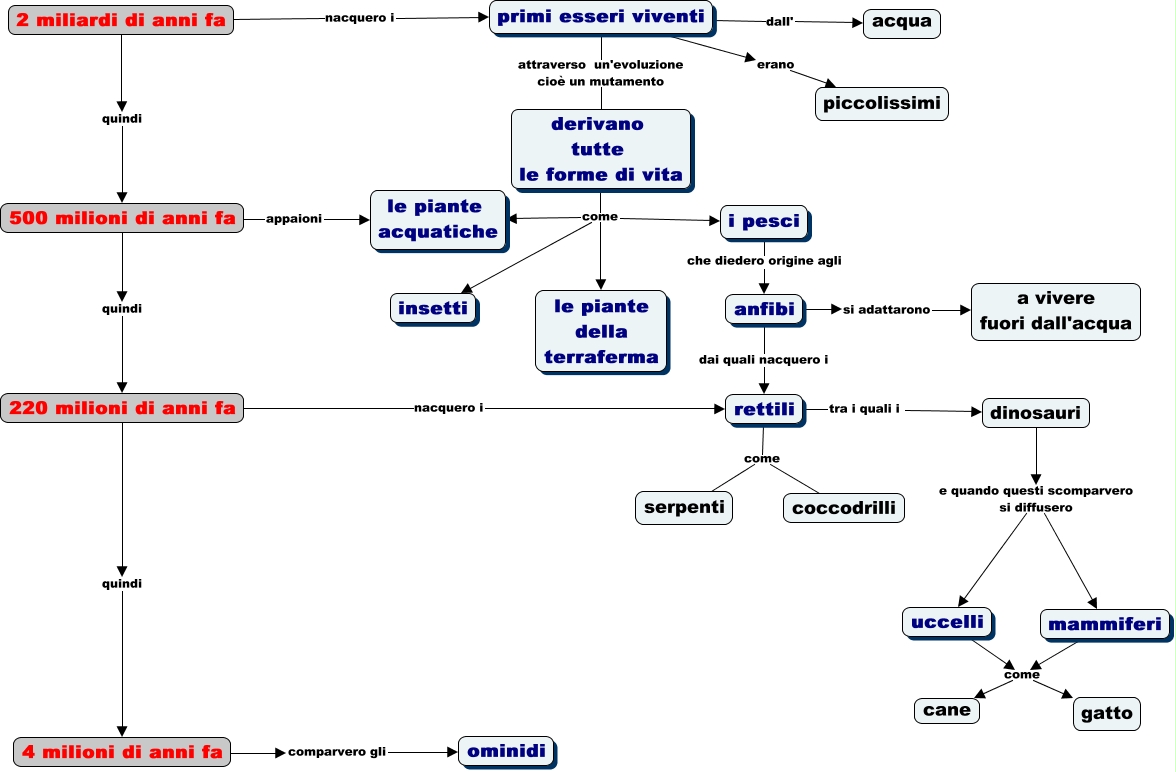 Questa Cmap, creata con IHMC CmapTools, contiene informazioni relative a: Come è cominciato, rettili come serpenti, 500 milioni di anni fa quindi 220 milioni di anni fa, dinosauri e quando questi scomparvero si diffusero uccelli, 220 milioni di anni fa nacquero i rettili, primi esseri viventi attraverso un'evoluzione cioè un mutamento derivano tutte le forme di vita, mammiferi come gatto, anfibi dai quali nacquero i rettili, mammiferi come cane, 2 miliardi di anni fa nacquero i primi esseri viventi, derivano tutte le forme di vita come le piante acquatiche, anfibi si adattarono a vivere fuori dall'acqua, rettili come coccodrilli, derivano tutte le forme di vita come le piante della terraferma, derivano tutte le forme di vita come insetti, 4 milioni di anni fa comparvero gli ominidi, primi esseri viventi dall' acqua, rettili tra i quali i dinosauri, primi esseri viventi erano piccolissimi, uccelli come cane, derivano tutte le forme di vita come i pesci