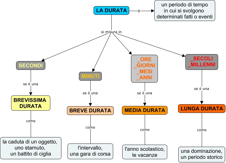 Questa Cmap, creata con IHMC CmapTools, contiene informazioni relative a: LE DURATE, LA DURATA si misura in _SECOLI _MILLENNI, LA DURATA si misura in _ORE _GIORNI _MESI _ANNI, MEDIA DURATA come l'anno scolastico, le vacanze, MINUTI se è una BREVE DURATA, _SECOLI _MILLENNI se è una LUNGA DURATA, LA DURATA si misura in SECONDI, _ORE _GIORNI _MESI _ANNI se è una MEDIA DURATA, LA DURATA si misura in MINUTI, SECONDI se è una BREVISSIMA DURATA, BREVE DURATA come l'intervallo, una gara di corsa, LUNGA DURATA come una dominazione, un periodo storico, BREVISSIMA DURATA come la caduta di un oggetto, uno starnuto, un battito di ciglia, LA DURATA è un periodo di tempo in cui si svolgono determinati fatti o eventi