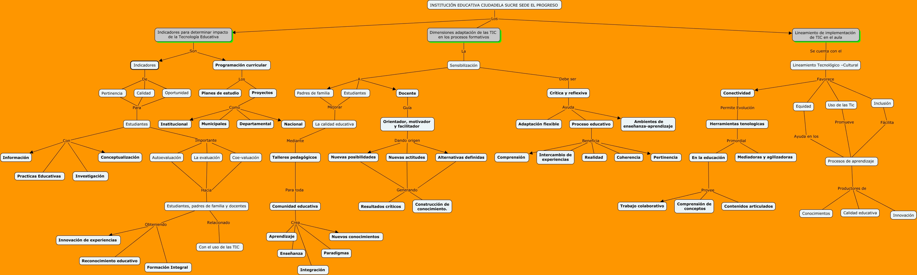 Este Cmap, tiene información relacionada con: Actividad 1.2 Mapa conceptual, Estudiantes, padres de familia y docentes Obteniendo Reconocimiento educativo, Proceso educativo Beneficia Coherencia, Estudiantes Mejorar La calidad educativa, Procesos de aprendizaje Productores de Innovación, Conectividad Permite Evolución Herramientas tenologicas, Proyectos Como Departamental, Estudiantes Importante Coe-valuación, Comunidad educativa Crea Integración, Inclusión Fácilita Procesos de aprendizaje, Proyectos Como Municipales, INSTITUCIÓN EDUCATIVA CIUDADELA SUCRE SEDE EL PROGRESO Los Lineamiento de implementación de TIC en el aula, Talleres pedagógicos Para toda Comunidad educativa, Crítica y reflexiva Ayuda Proceso educativo, Alternativas definidas Generando Resultados críticos, Comunidad educativa Crea Enseñanza, Estudiantes, padres de familia y docentes Obteniendo Innovación de experiencias, Proyectos Como Institucional, Comunidad educativa Crea Paradigmas, Docente Guía Orientador, motivador y facilitador, En la educación Provee Comprensión de conceptos