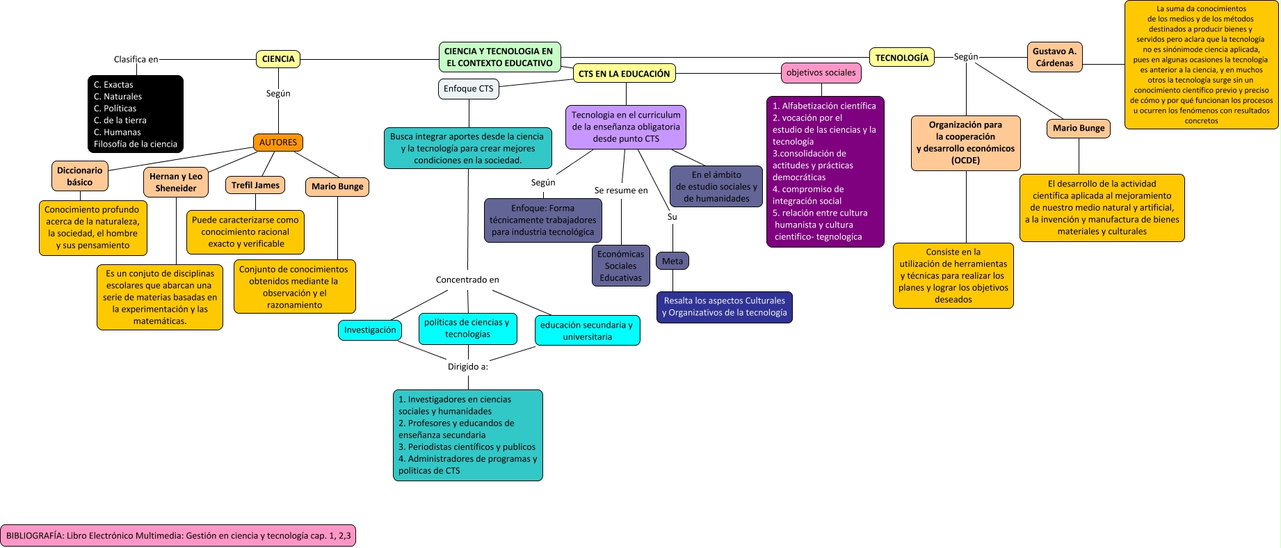 Este Cmap, tiene información relacionada con: ciencia y tecnologia, Busca integrar aportes desde la ciencia y la tecnología para crear mejores condiciones en la sociedad. Concentrado en educación secundaria y universitaria, CIENCIA Clasifica en C. Exactas C. Naturales C. Políticas C. de la tierra C. Humanas Filosofía de la ciencia, Tecnologia en el curriculum de la enseñanza obligatoria desde punto CTS Según Enfoque: Forma técnicamente trabajadores para industria tecnológica, CIENCIA Y TECNOLOGIA EN EL CONTEXTO EDUCATIVO ???? TECNOLOGÍA, Tecnologia en el curriculum de la enseñanza obligatoria desde punto CTS se En el ámbito de estudio sociales y de humanidades, TECNOLOGÍA Según Gustavo A. Cárdenas, Meta ???? Resalta los aspectos Culturales y Organizativos de la tecnología, Organización para la cooperación y desarrollo económicos (OCDE) ???? Consiste en la utilización de herramientas y técnicas para realizar los planes y lograr los objetivos deseados, CTS EN LA EDUCACIÓN ???? Tecnologia en el curriculum de la enseñanza obligatoria desde punto CTS, Tecnologia en el curriculum de la enseñanza obligatoria desde punto CTS Se resume en Económicas Sociales Educativas, Enfoque CTS ???? Busca integrar aportes desde la ciencia y la tecnología para crear mejores condiciones en la sociedad., políticas de ciencias y tecnologías Dirigido a: 1. Investigadores en ciencias sociales y humanidades 2. Profesores y educandos de enseñanza secundaria 3. Periodistas científicos y publicos 4. Administradores de programas y politicas de CTS, Mario Bunge ???? Conjunto de conocimientos obtenidos mediante la observación y el razonamiento, AUTORES ???? Hernan y Leo Sheneider, AUTORES ???? Trefil James, AUTORES ???? Mario Bunge, Tecnologia en el curriculum de la enseñanza obligatoria desde punto CTS Su Meta, Mario Bunge ???? El desarrollo de la actividad científica aplicada al mejoramiento de nuestro medio natural y artificial, a la invención y manufactura de bienes materiales y culturales, CIENCIA Y TECNOLOGIA EN EL CONTEXTO EDUCATIVO ???? CTS EN LA EDUCACIÓN, Diccionario básico ???? Conocimiento profundo acerca de la naturaleza, la sociedad, el hombre y sus pensamiento