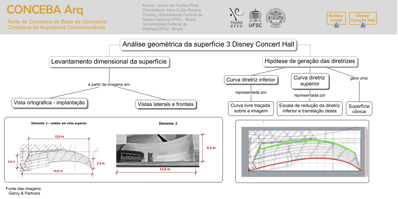 Esse mapa conceitual, produzido no IHMC CmapTools, tem a informação relacionada a: analise_geometrica_superf_3, Hipótese de geração das diretrizes Curva diretriz superior, Levantamento dimensional da superfície a partir de imagens em Vista ortográfica - implantação, Hipótese de geração das diretrizes gera uma Superfície cônica, Curva diretriz superior representada por Escala de redução da diretriz inferior e translação desta, Análise geométrica da superfície 3 Disney Concert Hall Hipótese de geração das diretrizes, Curva diretriz inferior representada por Curva livre traçada sobre a imagem, Hipótese de geração das diretrizes Curva diretriz inferior, Levantamento dimensional da superfície a partir de imagens em Vistas laterais e frontais, Análise geométrica da superfície 3 Disney Concert Hall Levantamento dimensional da superfície