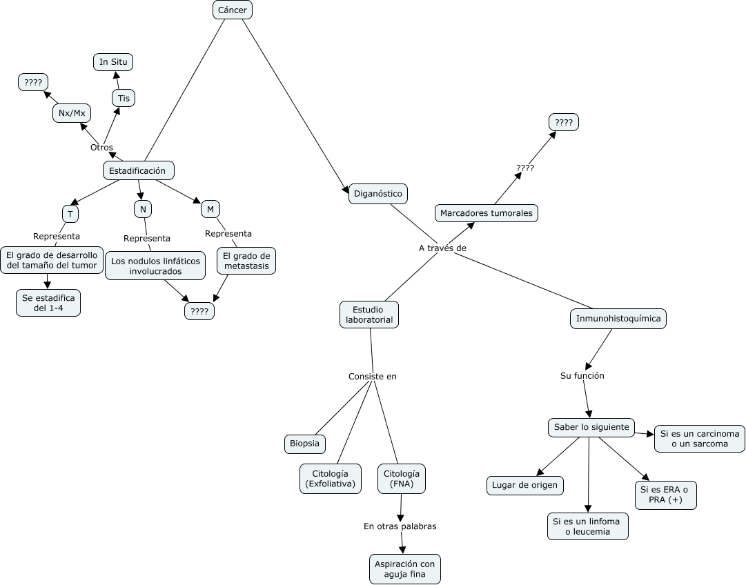 Este Cmap, tiene información relacionada con: MAPA UNIDAD V, M Representa El grado de metastasis, Marcadores tumorales ???? ????, El grado de metastasis ???? ????, Cáncer ???? Diganóstico, Saber lo siguiente ???? Si es un linfoma o leucemia, Estadificación Otros Nx/Mx, El grado de desarrollo del tamaño del tumor ???? Se estadifica del 1-4, Estadificación ???? T, T Representa El grado de desarrollo del tamaño del tumor, Saber lo siguiente ???? Si es ERA o PRA (+), Estadificación ???? M, Tis ???? In Situ, Estadificación ???? N, Nx/Mx ???? ????, Saber lo siguiente ???? Si es un carcinoma o un sarcoma, Estadificación Otros Tis, Inmunohistoquímica Su función Saber lo siguiente, Diganóstico A través de Inmunohistoquímica, Diganóstico A través de Estudio laboratorial, Cáncer ???? Estadificación
