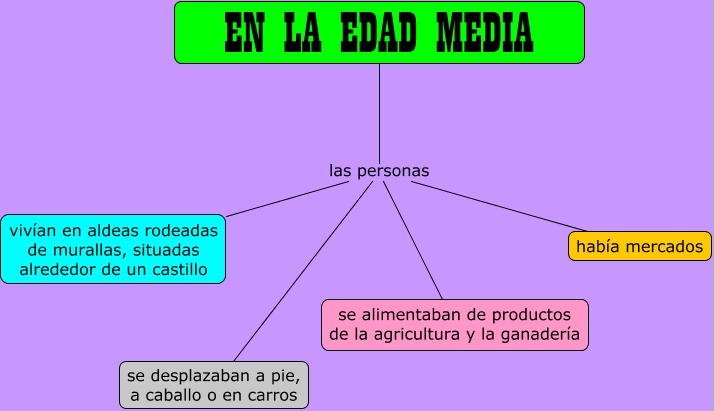 Este Cmap, tiene información relacionada con: En la Edad Media, EN LA EDAD MEDIA las personas vivían en aldeas rodeadas de murallas, situadas alrededor de un castillo, EN LA EDAD MEDIA las personas se desplazaban a pie, a caballo o en carros, EN LA EDAD MEDIA las personas había mercados, EN LA EDAD MEDIA las personas se alimentaban de productos de la agricultura y la ganadería