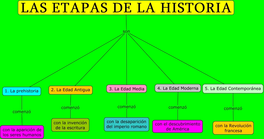 Este Cmap, tiene información relacionada con: Las etapas de la Historia, LAS ETAPAS DE LA HISTORIA son 4. La Edad Moderna, 2. La Edad Antigua comenzó con la invención de la escritura, 3. La Edad Media comenzó con la desaparición del imperio romano, 4. La Edad Moderna comenzó con el descubrimiento de América, LAS ETAPAS DE LA HISTORIA son 2. La Edad Antigua, LAS ETAPAS DE LA HISTORIA son 1. La prehistoria, 1. La prehistoria comenzó con la aparición de los seres humanos, 5. La Edad Contemporánea comenzó con la Revolución francesa, LAS ETAPAS DE LA HISTORIA son 5. La Edad Contemporánea, LAS ETAPAS DE LA HISTORIA son 3. La Edad Media