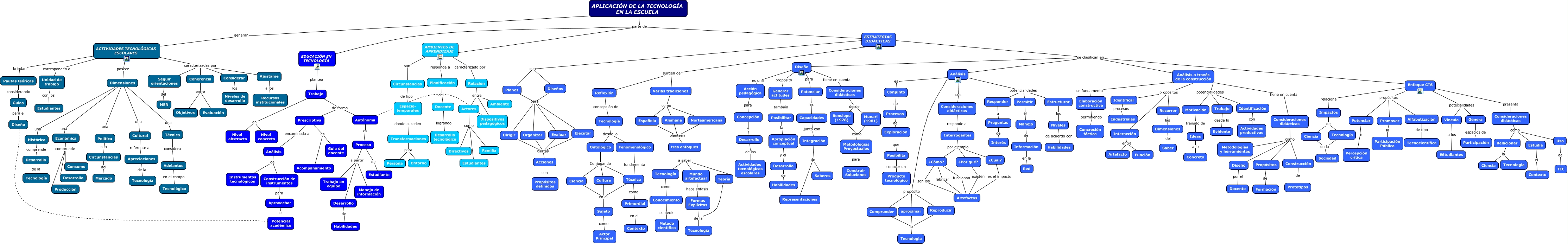 Este Cmap, tiene información relacionada con: Actividades tecnológicas escolares, EDUCACIÓN EN TECNOLOGÍA plantea Trabajo, Uso de TIC, Cultural referente a Apreciaciones, Acción pedagógica para Concepción, Tecnología como Conocimiento, ACTIVIDADES TECNOLÓGICAS ESCOLARES brindan Pautas teóricas, Técnica considera Adelantos, Prescriptiva es Guía del docente, AMBIENTES DE APRENDIZAJE responde a Planificación, Trabajo de forma Prescriptiva, Motivación tránsito de Ideas, Ontológico Conjugando Ciencia, Planes para Dirigir, Evaluar ciertas Acciones, Desarrollo de Habilidades, Munari (1981) como Metodologías Proyectuales, Trabajo en Nivel abstracto, Manejo de Información, Enfoque CTS propósitos Promover, Impactos de Tecnología