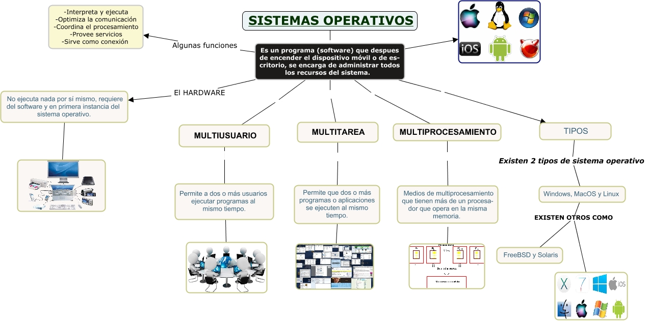 Este Cmap, tiene información relacionada con: TIC 2, Es un programa (software) que despues de encender el dispositivo móvil o de es- critorio, se encarga de administrar todos los recursos del sistema. TIPOS, Windows, MacOS y Linux EXISTEN OTROS COMO, Permite a dos o más usuarios ejecutar programas al mismo tiempo. ????, Es un programa (software) que despues de encender el dispositivo móvil o de es- critorio, se encarga de administrar todos los recursos del sistema. MULTIPROCESAMIENTO, Medios de multiprocesamiento que tienen más de un procesa- dor que opera en la misma memoria., TIPOS Existen 2 tipos de sistema operativo Windows, MacOS y Linux, No ejecuta nada por sí mismo, requiere del software y en primera instancia del sistema operativo. ????, Permite que dos o más programas o aplicaciones se ejecuten al mismo tiempo. ????, Es un programa (software) que despues de encender el dispositivo móvil o de es- critorio, se encarga de administrar todos los recursos del sistema. MULTIUSUARIO, Es un programa (software) que despues de encender el dispositivo móvil o de es- critorio, se encarga de administrar todos los recursos del sistema. El HARDWARE No ejecuta nada por sí mismo, requiere del software y en primera instancia del sistema operativo., Es un programa (software) que despues de encender el dispositivo móvil o de es- critorio, se encarga de administrar todos los recursos del sistema. MULTITAREA, Es un programa (software) que despues de encender el dispositivo móvil o de es- critorio, se encarga de administrar todos los recursos del sistema. Algunas funciones -Interpreta y ejecuta -Optimiza la comunicación -Coordina el procesamiento -Provee servicios -Sirve como conexión, MULTIPROCESAMIENTO Medios de multiprocesamiento que tienen más de un procesa- dor que opera en la misma memoria., Es un programa (software) que despues de encender el dispositivo móvil o de es- critorio, se encarga de administrar todos los recursos del sistema., SISTEMAS OPERATIVOS Es un programa (software) que despues de encender el dispositivo móvil o de es- critorio, se encarga de administrar todos los recursos del sistema., MULTIUSUARIO Permite a dos o más usuarios ejecutar programas al mismo tiempo., MULTITAREA Permite que dos o más programas o aplicaciones se ejecuten al mismo tiempo., Windows, MacOS y Linux EXISTEN OTROS COMO FreeBSD y Solaris