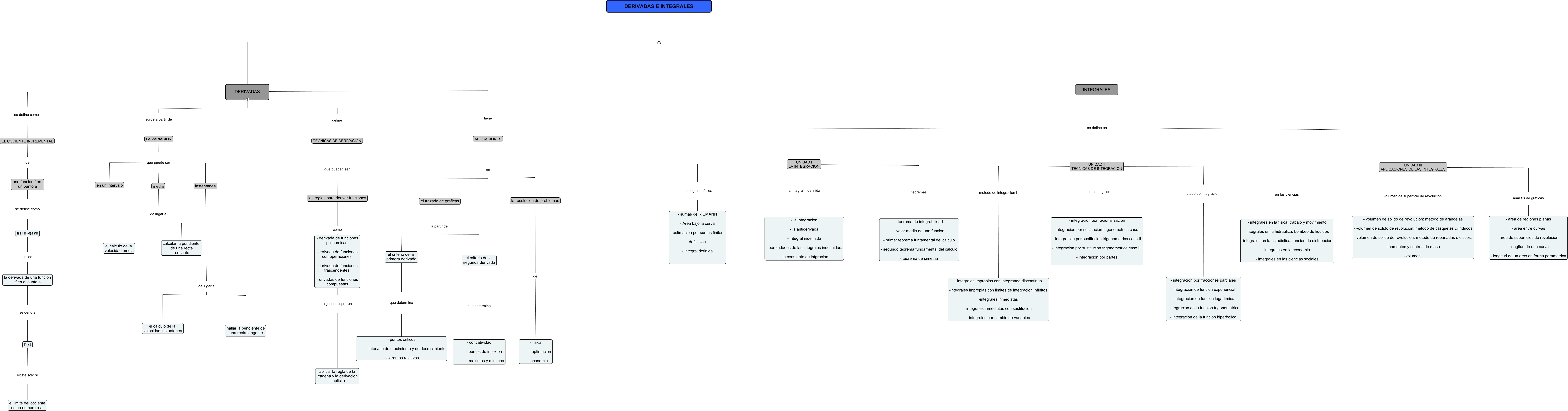 Este Cmap, tiene información relacionada con: DERIVACIONES E INTEGRALES, LA VARIACION que puede ser instantanea, EL COCIENTE INCREMENTAL de una funcion f en un punto a, DERIVADAS surge a partir de LA VARIACION, instantanea da lugar a hallar la pendiente de una recta tangente, instantanea da lugar a el calculo de la velocidad instantanea, DERIVADAS se define como EL COCIENTE INCREMENTAL, LA VARIACION que puede ser media, DERIVADAS tiene APLICACIONES, UNIDAD II TECNICAS DE INTEGRACION metodo de integracion I - integrales impropias con integrando discontinuo -integrales impropias con limites de integracion infinitos -integrales inmediatas -integrales inmediatas con sustitucion - integrales por cambio de variables, las reglas para derivar funciones como - derivada de funciones polinomicas. - derivada de funciones con operaciones. - derivada de funciones trascendentes. - drivadas de funciones compuestas., una funcion f en un punto a se define como f(a+h)-f(a)/h, UNIDAD III APLICACIONES DE LAS INTEGRALES analisis de graficas - area de regiones planas - area entre curvas - area de superficies de revolucion - longitud de una curva - longitud de un arco en forma parametrica, el criterio de la primera derivada que determina - puntos criticos - intervalo de crecimiento y de decrecimiento - extremos relativos, UNIDAD III APLICACIONES DE LAS INTEGRALES en las ciencias - integrales en la fisica: trabajo y movimiento -integrales en la hidraulica: bombeo de liquidos -integrales en la estadistica: funcion de distribucion -integrales en la economia. - integrales en las ciencias sociales, f(a+h)-f(a)/h se lee la derivada de una funcion f en el punto a, el criterio de la segunda derivada que determina - concatividad - puntps de inflexion - maximos y minimos, UNIDAD I LA INTEGRACION la integral indefinida - la integracion - la antiderivada - integral indefinida - porpiedades de las integrales indefinidas. - la constante de intgracion, DERIVADAS E INTEGRALES VS INTEGRALES, media da lugar a calcular la pendiente de una recta secante, la derivada de una funcion f en el punto a se denota f"(x)