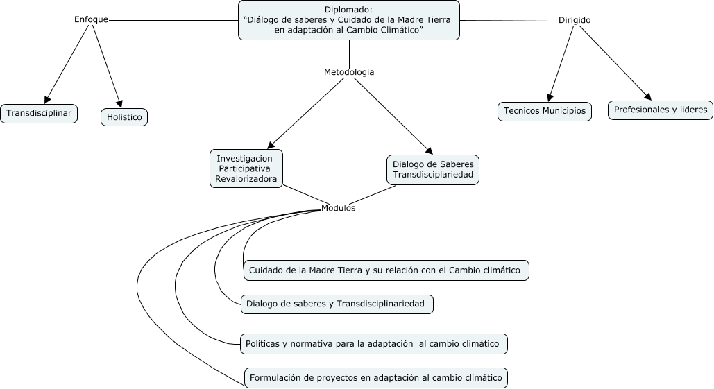 Este Cmap, tiene información relacionada con: Diplomado, Diplomado: “Diálogo de saberes y Cuidado de la Madre Tierra en adaptación al Cambio Climático” Metodologia Investigacion Participativa Revalorizadora, Cuidado de la Madre Tierra y su relación con el Cambio climático Modulos Dialogo de Saberes Transdisciplariedad, Diplomado: “Diálogo de saberes y Cuidado de la Madre Tierra en adaptación al Cambio Climático” Dirigido Tecnicos Municipios, Diplomado: “Diálogo de saberes y Cuidado de la Madre Tierra en adaptación al Cambio Climático” Enfoque Holistico, Cuidado de la Madre Tierra y su relación con el Cambio climático Modulos Investigacion Participativa Revalorizadora, Diplomado: “Diálogo de saberes y Cuidado de la Madre Tierra en adaptación al Cambio Climático” Dirigido Profesionales y lideres, Diplomado: “Diálogo de saberes y Cuidado de la Madre Tierra en adaptación al Cambio Climático” Enfoque Transdisciplinar, Cuidado de la Madre Tierra y su relación con el Cambio climático Modulos Dialogo de saberes y Transdisciplinariedad, Diplomado: “Diálogo de saberes y Cuidado de la Madre Tierra en adaptación al Cambio Climático” Metodologia Dialogo de Saberes Transdisciplariedad, Cuidado de la Madre Tierra y su relación con el Cambio climático Modulos Formulación de proyectos en adaptación al cambio climático, Cuidado de la Madre Tierra y su relación con el Cambio climático Modulos Políticas y normativa para la adaptación al cambio climático