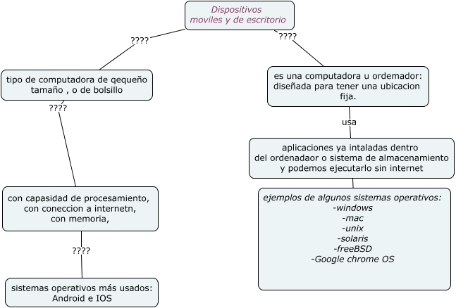 Este Cmap, tiene información relacionada con: LALI DISPOSITIVOS MOVILES, aplicaciones ya intaladas dentro del ordenadaor o sistema de almacenamiento y podemos ejecutarlo sin internet ???? ejemplos de algunos sistemas operativos: -windows -mac -unix -solaris -freeBSD -Google chrome OS, Dispositivos moviles y de escritorio ???? es una computadora u ordemador: diseñada para tener una ubicacion fija., Dispositivos moviles y de escritorio ???? tipo de computadora de qequeño tamaño , o de bolsillo, es una computadora u ordemador: diseñada para tener una ubicacion fija. usa aplicaciones ya intaladas dentro del ordenadaor o sistema de almacenamiento y podemos ejecutarlo sin internet, con capasidad de procesamiento, con coneccion a internetn, con memoria, ???? sistemas operativos más usados: Android e IOS, tipo de computadora de qequeño tamaño , o de bolsillo ???? con capasidad de procesamiento, con coneccion a internetn, con memoria,