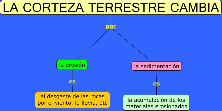 Este Cmap, tiene información relacionada con: La corteza terrestre cambia, LA CORTEZA TERRESTRE CAMBIA por la erosión, la sedimentación es la acumulación de los materiales erosionados, LA CORTEZA TERRESTRE CAMBIA por la sedimentación, la erosión es el desgaste de las rocas por el viento, la lluvia, etc