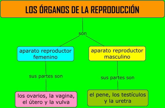 Este Cmap, tiene información relacionada con: Los órganos de la reproducción, aparato reproductor femenino sus partes son los ovarios, la vagina, el útero y la vulva, LOS ÓRGANOS DE LA REPRODUCCIÓN son aparato reproductor femenino, aparato reproductor masculino sus partes son el pene, los testículos y la uretra, LOS ÓRGANOS DE LA REPRODUCCIÓN son aparato reproductor masculino