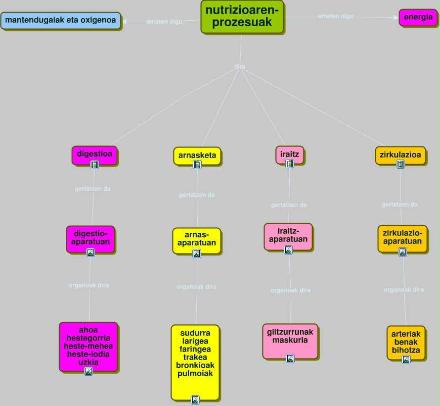 This Concept Map, created with IHMC CmapTools, has information related to: nutrzioa Iker E, nutrizioaren- prozesuak ematen digu energia, nutrizioaren- prozesuak dira iraitz, iraitz gertatzen da iraitz- aparatuan, iraitz- aparatuan organoak dira giltzurrunak maskuria, nutrizioaren- prozesuak dira zirkulazioa, arnas- aparatuan organoak dira sudurra larigea faringea trakea bronkioak pulmoiak, nutrizioaren- prozesuak dira arnasketa, nutrizioaren- prozesuak dira digestioa, zirkulazioa gertatzen da zirkulazio- aparatuan, digestioa gertatzen da digestio- aparatuan, zirkulazio- aparatuan organoak dira arteriak benak bihotza, nutrizioaren- prozesuak ematen digu mantendugaiak eta oxigenoa, arnasketa gertatzen da arnas- aparatuan, digestio- aparatuan organoak dira ahoa hestegorria heste-mehea heste-lodia uzkia