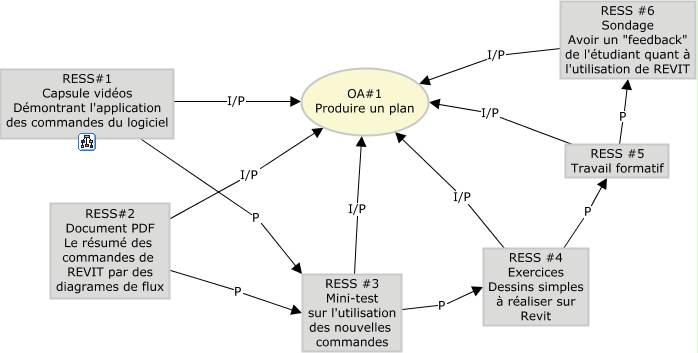 This Concept Map, created with IHMC CmapTools, has information related to: OA1 Produire un plan, RESS #5 Travail formatif P RESS #6 Sondage Avoir un "feedback" de l'étudiant quant à l'utilisation de REVIT, RESS#2 Document PDF Le résumé des commandes de REVIT par des diagrames de flux P RESS #3 Mini-test sur l'utilisation des nouvelles commandes, RESS#1 Capsule vidéos Démontrant l'application des commandes du logiciel I/P OA#1 Produire un plan, RESS#1 Capsule vidéos Démontrant l'application des commandes du logiciel P RESS #3 Mini-test sur l'utilisation des nouvelles commandes, RESS #6 Sondage Avoir un "feedback" de l'étudiant quant à l'utilisation de REVIT I/P OA#1 Produire un plan, RESS #4 Exercices Dessins simples à réaliser sur Revit I/P OA#1 Produire un plan, RESS #3 Mini-test sur l'utilisation des nouvelles commandes I/P OA#1 Produire un plan, RESS #5 Travail formatif I/P OA#1 Produire un plan, RESS#2 Document PDF Le résumé des commandes de REVIT par des diagrames de flux I/P OA#1 Produire un plan, RESS #3 Mini-test sur l'utilisation des nouvelles commandes P RESS #4 Exercices Dessins simples à réaliser sur Revit, RESS #4 Exercices Dessins simples à réaliser sur Revit P RESS #5 Travail formatif