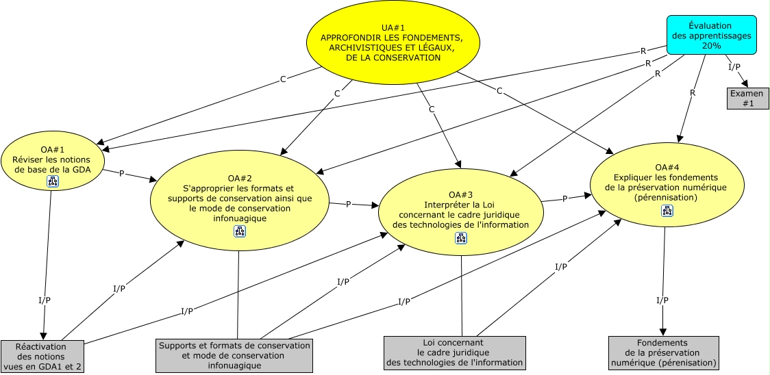 Cette carte de concepts créée avec IHMC CmapTools traite de: UA1, Réactivation des notions vues en GDA1 et 2 I/P OA#3 Interpréter la Loi concernant le cadre juridique des technologies de l'information, OA#1 Réviser les notions de base de la GDA P OA#2 S'approprier les formats et supports de conservation ainsi que le mode de conservation infonuagique, OA#1 Réviser les notions de base de la GDA I/P Réactivation des notions vues en GDA1 et 2, OA#2 S'approprier les formats et supports de conservation ainsi que le mode de conservation infonuagique P OA#3 Interpréter la Loi concernant le cadre juridique des technologies de l'information, Supports et formats de conservation et mode de conservation infonuagique I/P OA#3 Interpréter la Loi concernant le cadre juridique des technologies de l'information, Évaluation des apprentissages 20% R OA#4 Expliquer les fondements de la préservation numérique (pérennisation), OA#3 Interpréter la Loi concernant le cadre juridique des technologies de l'information P OA#4 Expliquer les fondements de la préservation numérique (pérennisation), Évaluation des apprentissages 20% I/P Examen #1, OA#2 S'approprier les formats et supports de conservation ainsi que le mode de conservation infonuagique I/P Supports et formats de conservation et mode de conservation infonuagique, Évaluation des apprentissages 20% R OA#3 Interpréter la Loi concernant le cadre juridique des technologies de l'information, Supports et formats de conservation et mode de conservation infonuagique I/P OA#4 Expliquer les fondements de la préservation numérique (pérennisation), Évaluation des apprentissages 20% R OA#1 Réviser les notions de base de la GDA, Évaluation des apprentissages 20% R OA#2 S'approprier les formats et supports de conservation ainsi que le mode de conservation infonuagique, OA#3 Interpréter la Loi concernant le cadre juridique des technologies de l'information I/P Loi concernant le cadre juridique des technologies de l'information, Réactivation des notions vues en GDA1 et 2 I/P OA#2 S'approprier les formats et supports de conservation ainsi que le mode de conservation infonuagique, Loi concernant le cadre juridique des technologies de l'information I/P OA#4 Expliquer les fondements de la préservation numérique (pérennisation), UA#1 APPROFONDIR LES FONDEMENTS, ARCHIVISTIQUES ET LÉGAUX, DE LA CONSERVATION C OA#4 Expliquer les fondements de la préservation numérique (pérennisation), OA#4 Expliquer les fondements de la préservation numérique (pérennisation) I/P Fondements de la préservation numérique (pérenisation), UA#1 APPROFONDIR LES FONDEMENTS, ARCHIVISTIQUES ET LÉGAUX, DE LA CONSERVATION C OA#2 S'approprier les formats et supports de conservation ainsi que le mode de conservation infonuagique, UA#1 APPROFONDIR LES FONDEMENTS, ARCHIVISTIQUES ET LÉGAUX, DE LA CONSERVATION C OA#3 Interpréter la Loi concernant le cadre juridique des technologies de l'information