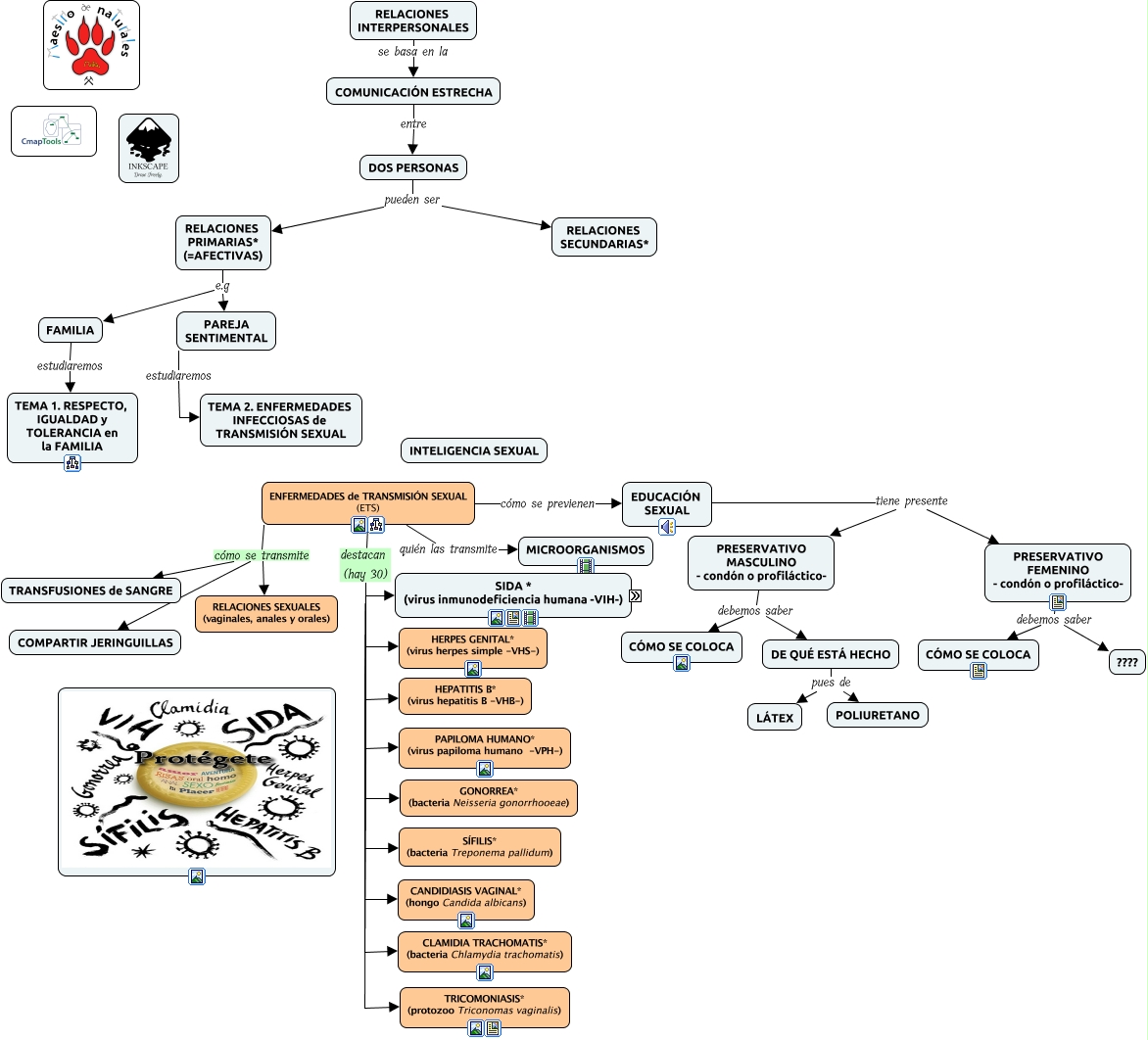 Este Cmap, tiene información relacionada con: Tema 2. Enfermedades infecciosas de transmisión sexual, El VIH recuerda NO SE CONTAGIA POR, ENFERMEDADES de TRANSMISIÓN SEXUAL (ETS) destacan (hay 30) HEPATITIS B* (virus hepatitis B -VHB-), RELACIONES PRIMARIAS* (=AFECTIVAS) e.g FAMILIA, ENFERMEDADES de TRANSMISIÓN SEXUAL (ETS) cómo se transmite RELACIONES SEXUALES (vaginales, anales y orales), El VIH se contagia a través de la LECHE MATERNA, DOS PERSONAS pueden ser RELACIONES PRIMARIAS* (=AFECTIVAS), ENFERMEDADES de TRANSMISIÓN SEXUAL (ETS) cómo se previenen EDUCACIÓN SEXUAL, FAMILIA estudiaremos TEMA 1. RESPECTO, IGUALDAD y TOLERANCIA en la FAMILIA, COMUNICACIÓN ESTRECHA entre DOS PERSONAS, El VIH se contagia a través de la FLUIDOS VAGINALES, ENFERMEDADES de TRANSMISIÓN SEXUAL (ETS) cómo se transmite COMPARTIR JERINGUILLAS, ENFERMEDADES de TRANSMISIÓN SEXUAL (ETS) destacan (hay 30) SÍFILIS* (bacteria Treponema pallidum), RELACIONES INTERPERSONALES se basa en la COMUNICACIÓN ESTRECHA, EDUCACIÓN SEXUAL tiene presente PRESERVATIVO MASCULINO - condón o profiláctico-, EDUCACIÓN SEXUAL tiene presente PRESERVATIVO FEMENINO - condón o profiláctico-, El VIH se contagia a través de la SEMEN, ENFERMEDADES de TRANSMISIÓN SEXUAL (ETS) destacan (hay 30) PAPILOMA HUMANO* (virus papiloma humano -VPH-), RELACIONES PRIMARIAS* (=AFECTIVAS) e.g PAREJA SENTIMENTAL, PAREJA SENTIMENTAL estudiaremos TEMA 2. ENFERMEDADES INFECCIOSAS de TRANSMISIÓN SEXUAL, ENFERMEDADES de TRANSMISIÓN SEXUAL (ETS) destacan (hay 30) SIDA * (virus inmunodeficiencia humana -VIH-)