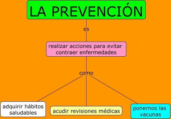 Este Cmap, tiene información relacionada con: La prevención, LA PREVENCIÓN es realizar acciones para evitar contraer enfermedades, realizar acciones para evitar contraer enfermedades como acudir revisiones médicas, realizar acciones para evitar contraer enfermedades como ponernos las vacunas, realizar acciones para evitar contraer enfermedades como adquirir hábitos saludables