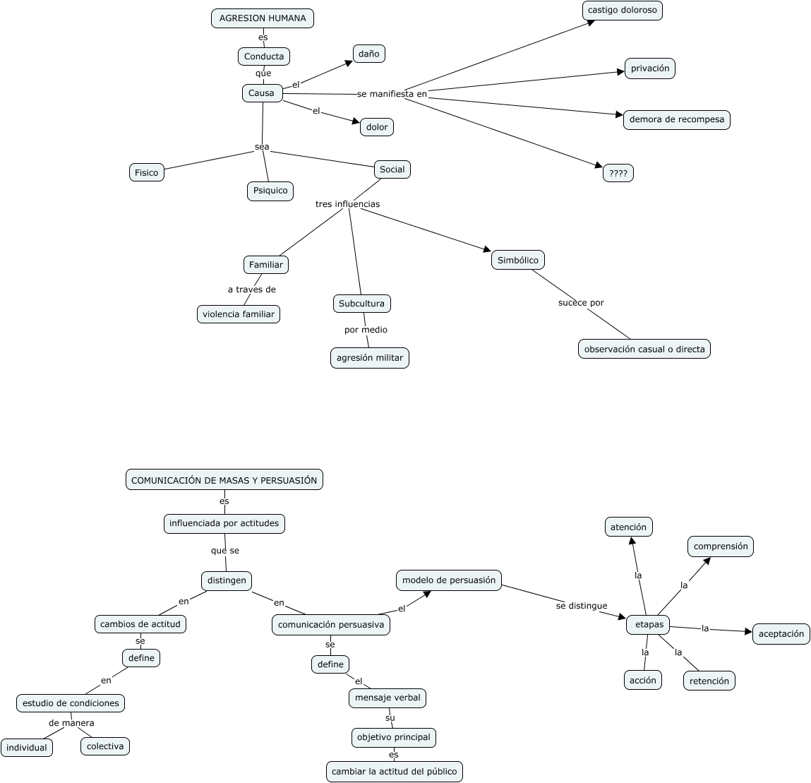 Este Cmap, tiene información relacionada con: PSICOLOGIA SOCIAL, COMUNICACIÓN DE MASAS Y PERSUASIÓN es influenciada por actitudes, Causa sea Psiquico, Causa se manifiesta en ????, define el mensaje verbal, cambios de actitud se define, Subcultura por medio agresión militar, estudio de condiciones de manera individual, comunicación persuasiva el modelo de persuasión, AGRESION HUMANA es Conducta, distingen en comunicación persuasiva, Social tres influencias Familiar, Social sea Psiquico, etapas la comprensión, modelo de persuasión se distingue etapas, etapas la retención, comunicación persuasiva se define, Fisico sea Psiquico, Familiar a traves de violencia familiar, etapas la aceptación, estudio de condiciones de manera colectiva