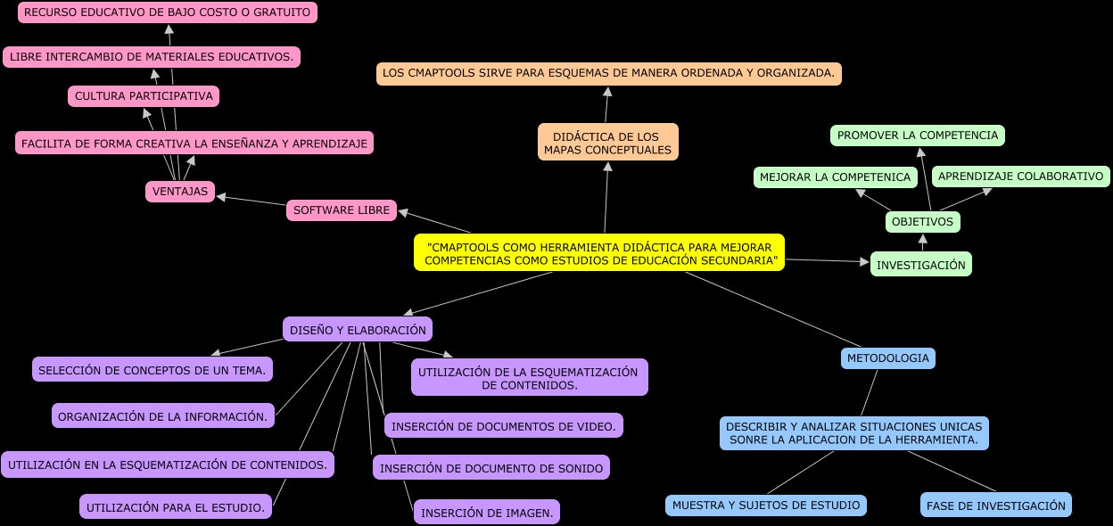 Este Cmap, tiene información relacionada con: HERRAMIENTA DIDACTICAPARA MEJORAR LAS ESTRATEGIAS EN CMAPTOOLS, VENTAJAS ???? CULTURA PARTICIPATIVA, DISEÑO Y ELABORACIÓN ???? UTILIZACIÓN EN LA ESQUEMATIZACIÓN DE CONTENIDOS., METODOLOGIA ???? DESCRIBIR Y ANALIZAR SITUACIONES UNICAS SONRE LA APLICACION DE LA HERRAMIENTA., OBJETIVOS ???? APRENDIZAJE COLABORATIVO, DISEÑO Y ELABORACIÓN ???? INSERCIÓN DE DOCUMENTOS DE VIDEO., "CMAPTOOLS COMO HERRAMIENTA DIDÁCTICA PARA MEJORAR COMPETENCIAS COMO ESTUDIOS DE EDUCACIÓN SECUNDARIA" ???? SOFTWARE LIBRE, INVESTIGACIÓN ???? OBJETIVOS, DESCRIBIR Y ANALIZAR SITUACIONES UNICAS SONRE LA APLICACION DE LA HERRAMIENTA. ???? MUESTRA Y SUJETOS DE ESTUDIO, VENTAJAS ???? RECURSO EDUCATIVO DE BAJO COSTO O GRATUITO, DISEÑO Y ELABORACIÓN ???? UTILIZACIÓN DE LA ESQUEMATIZACIÓN DE CONTENIDOS., VENTAJAS ???? FACILITA DE FORMA CREATIVA LA ENSEÑANZA Y APRENDIZAJE, DISEÑO Y ELABORACIÓN ???? UTILIZACIÓN PARA EL ESTUDIO., "CMAPTOOLS COMO HERRAMIENTA DIDÁCTICA PARA MEJORAR COMPETENCIAS COMO ESTUDIOS DE EDUCACIÓN SECUNDARIA" ???? DISEÑO Y ELABORACIÓN, DIDÁCTICA DE LOS MAPAS CONCEPTUALES ???? LOS CMAPTOOLS SIRVE PARA ESQUEMAS DE MANERA ORDENADA Y ORGANIZADA., DISEÑO Y ELABORACIÓN ???? ORGANIZACIÓN DE LA INFORMACIÓN., "CMAPTOOLS COMO HERRAMIENTA DIDÁCTICA PARA MEJORAR COMPETENCIAS COMO ESTUDIOS DE EDUCACIÓN SECUNDARIA" ???? METODOLOGIA, DISEÑO Y ELABORACIÓN ???? INSERCIÓN DE DOCUMENTO DE SONIDO, DESCRIBIR Y ANALIZAR SITUACIONES UNICAS SONRE LA APLICACION DE LA HERRAMIENTA. ???? FASE DE INVESTIGACIÓN, OBJETIVOS ???? MEJORAR LA COMPETENICA, VENTAJAS ???? LIBRE INTERCAMBIO DE MATERIALES EDUCATIVOS.