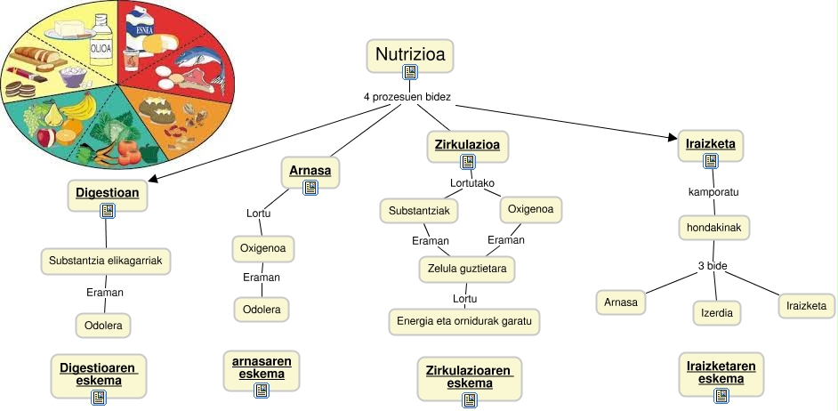 This Concept Map, created with IHMC CmapTools, has information related to: Nutrizioa, Nutrizioa 4 prozesuen bidez Digestioan, Nutrizioa 4 prozesuen bidez Arnasa, Substantzia elikagarriak Eraman Odolera, Arnasa Lortu Oxigenoa, Digestioan Lortu Substantzia elikagarriak, Nutrizioa 4 prozesuen bidez Iraizketa, hondakinak 3 bide Izerdia, hondakinak 3 bide Iraizketa, Substantziak Eraman Zelula guztietara, Oxigenoa Eraman Odolera, Nutrizioa 4 prozesuen bidez Zirkulazioa, hondakinak 3 bide Arnasa, Iraizketa kamporatu hondakinak, Zirkulazioa Lortutako Substantziak, Zirkulazioa Lortutako Oxigenoa, Zelula guztietara Lortu Energia eta ornidurak garatu, Oxigenoa Eraman Zelula guztietara