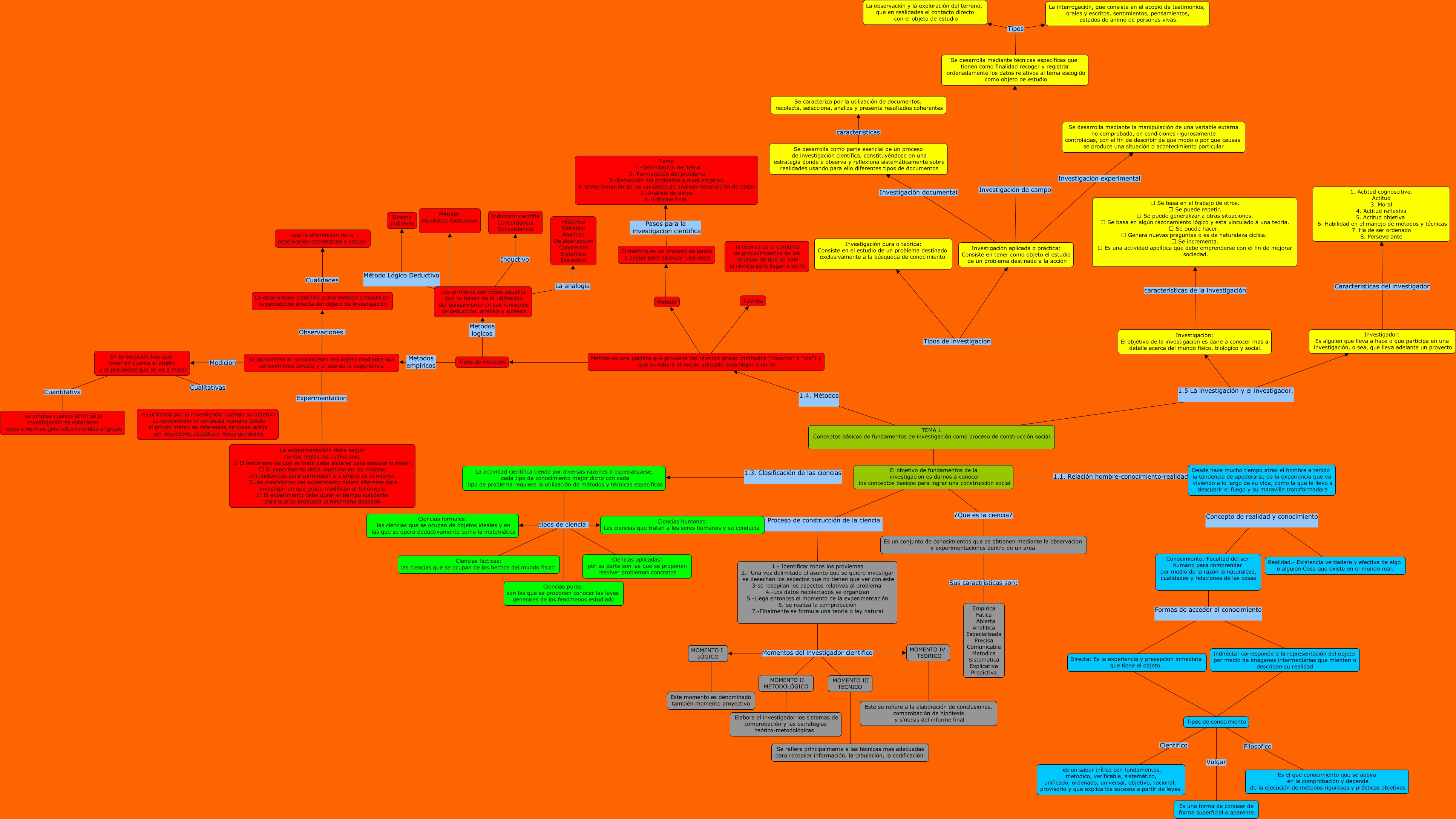Este Cmap, tiene información relacionada con: fundamentos.cmap, El método es un proceso de pasos a seguir para alcanzar una meta Pasos para la investigacion cientifica Tema 1.-Delimitación del tema 2.-Formulación del problema 3.-Reducción del problema a nivel empírico 4.-Determinación de las unidades de análisis-Recolección de datos 5.-Análisis de datos 6.-Informe final., MOMENTO III TÉCNICO ???? Se refiere principalmente a las técnicas mas adecuadas para recopilar información, la tabulación, la codificación, Investigación: El objetivo de la investigacion es darle a conocer mas a detalle acerca del mundo fisico, biologico y social. Tipos de investigacion Investigación pura o teórica: Consiste en el estudio de un problema destinado exclusivamente a la búsqueda de conocimiento., MOMENTO II METODOLÓGICO ???? Elabora el investigador los sistemas de comprobación y las estrategias teórico-metodológicas, El objetivo de fundamentos de la investigacion es darnos a conocer los conceptos basicos para lograr una construccion social 1.3. Clasificación de las ciencias La actividad científica tiende por diversas razones a especializarse, cada tipo de conocimiento mejor dicho con cada tipo de problema requiere la utilización de métodos y técnicas específicas, Se desarrolla como parte esencial de un proceso de investigación científica, constituyéndose en una estrategia donde e observa y reflexiona sistemáticamente sobre realidades usando para ello diferentes tipos de documentos caracteristicas Se caracteriza por la utilización de documentos; recolecta, selecciona, analiza y presenta resultados coherentes, TEMA 1 Conceptos básicos de fundamentos de investigación como proceso de construcción social. ???? El objetivo de fundamentos de la investigacion es darnos a conocer los conceptos basicos para lograr una construccion social, TEMA 1 Conceptos básicos de fundamentos de investigación como proceso de construcción social. 1.5 La investigación y el investigador. Investigador: Es alguien que lleva a hace o que participa en una investigación, o sea, que lleva adelante un proyecto, Tipos de conocimiento Vulgar Es una forma de conoser de forma superficial o aparente., se aproximan al conocimiento del objeto mediante sus conocimiento directo y el uso de la experiencia Observaciones La observación científica como método consiste en la percepción directa del objeto de investigación, Se desarrolla mediante técnicas específicas que tienen como finalidad recoger y registrar ordenadamente los datos relativos al tema escogido como objeto de estudio Tipos La observación y la exploración del terreno, que en realidades el contacto directo con el objeto de estudio, Tipos de metodos Metodos empiricos se aproximan al conocimiento del objeto mediante sus conocimiento directo y el uso de la experiencia, Metodo ???? El método es un proceso de pasos a seguir para alcanzar una meta, Investigación aplicada o práctica: Consiste en tener como objeto el estudio de un problema destinado a la acción Investigación documental Se desarrolla como parte esencial de un proceso de investigación científica, constituyéndose en una estrategia donde e observa y reflexiona sistemáticamente sobre realidades usando para ello diferentes tipos de documentos, Investigación aplicada o práctica: Consiste en tener como objeto el estudio de un problema destinado a la acción Investigación de campo Se desarrolla mediante técnicas específicas que tienen como finalidad recoger y registrar ordenadamente los datos relativos al tema escogido como objeto de estudio, El objetivo de fundamentos de la investigacion es darnos a conocer los conceptos basicos para lograr una construccion social ¿Que es la ciencia? Es un conjunto de conosimientos que se obtienen mediante la observacion y experimentaciones dentro de un area., Investigación: El objetivo de la investigacion es darle a conocer mas a detalle acerca del mundo fisico, biologico y social. Tipos de investigacion Investigación aplicada o práctica: Consiste en tener como objeto el estudio de un problema destinado a la acción, La actividad científica tiende por diversas razones a especializarse, cada tipo de conocimiento mejor dicho con cada tipo de problema requiere la utilización de métodos y técnicas específicas tipos de ciencia Ciencias formales: las ciencias que se ocupan de objetos ideales y en las que se opera deductivamente como la matemática, Los primeros son todos aquellos que se basan en la utilización del pensamiento en sus funciones de deducción, análisis y síntesis La analogia Historico Sintetico Analitico De abstraccion Concrecion Sistemico Dialectico, 1.- Identificar todos los provlemas 2.- Una vez delimitado el asunto que se quiere investigar se desechan los aspectos que no tienen que ver con éste 3-se recopilan los aspectos relativos al problema 4.-Los datos recolectados se organizan 5.-Llega entonces el momento de la experimentación 6.-se realiza la comprobación 7.-Finalmente se formula una teoría o ley natural Momentos del investigador cientifico MOMENTO IV TEÓRICO