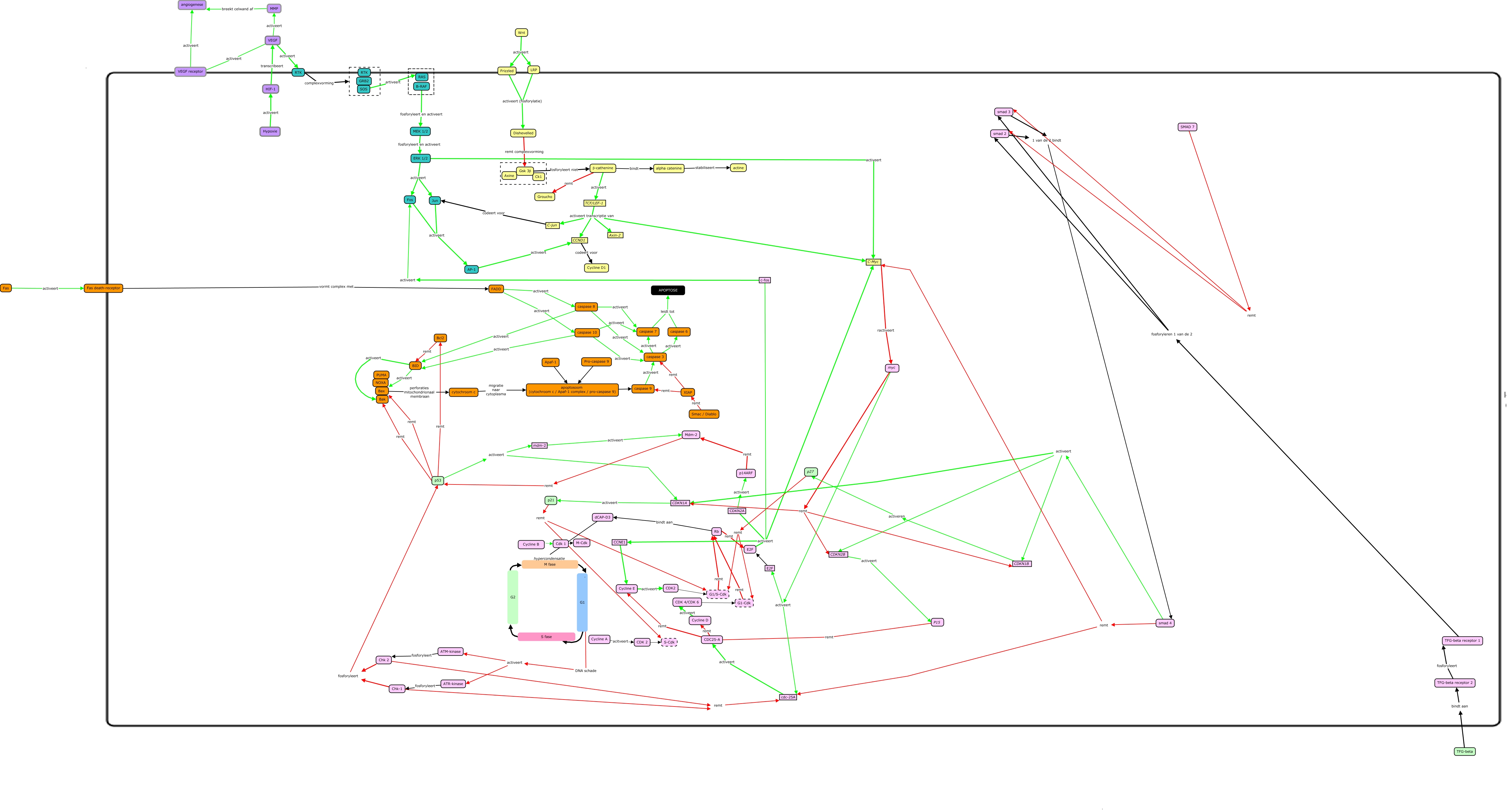 Deze Concept Map heeft informatie gerelateerd aan: Cmap 19-11 12-23, ATR-kinase fosforyleert Chk-1, C-jun codeert voor Jun, Jun activeert AP-1, Wnt activeert LRP, remt G1/S-Cdk, TFG-beta bindt aan, E2F E2F, XIAP remt caspase 3, CDK2 G1/S-Cdk, caspase 8 activeert caspase 7, p27 remt G1/S-Cdk, E2F activeert CCNE1, activeert CDKN2B, fosforyleert p53, caspase 8 activeert BID, AP-1 activeert CCND1, BID activeert Bax, smad 4 activeert, remt S-Cdk, myc remt CDKN1B