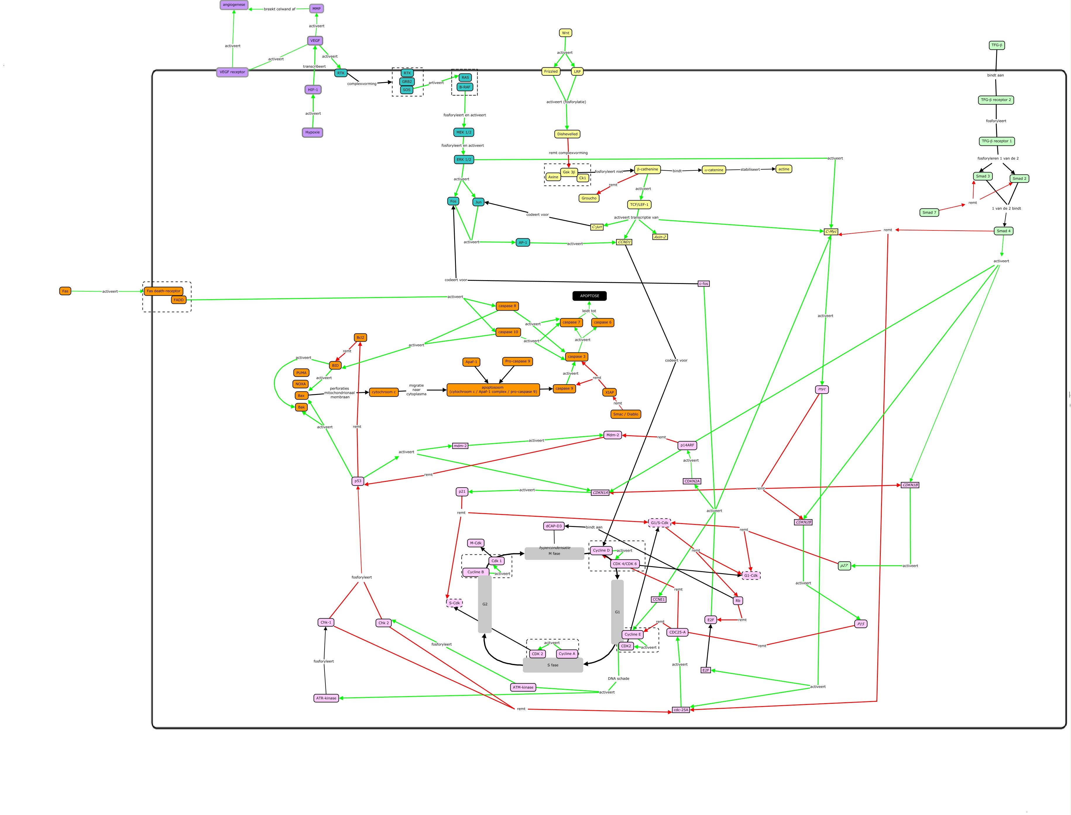 Deze Concept Map heeft informatie gerelateerd aan: Cmap 19-11 1323, Chk-1 fosforyleert, E2F activeert CDKN2A, ATM-kinase fosforyleert Chk 2, myc remt CDKN1A, myc remt CDKN2B, remt Smad 3, Smad 3 1 van de 2 bindt, Wnt activeert Frizzled, TFG-β receptor 1 fosforyleren 1 van de 2, S fase G2, M fase G1, B-RAF fosforyleert en activeert MEK 1/2, caspase 3 activeert caspase 6, G2 M fase, p53 activeert, CDK2 G1/S-Cdk, Dishevelled remt complexvorming Gsk 3β, TFG-β bindt aan, ATR-kinase fosforyleert Chk-1, Rb remt E2F
