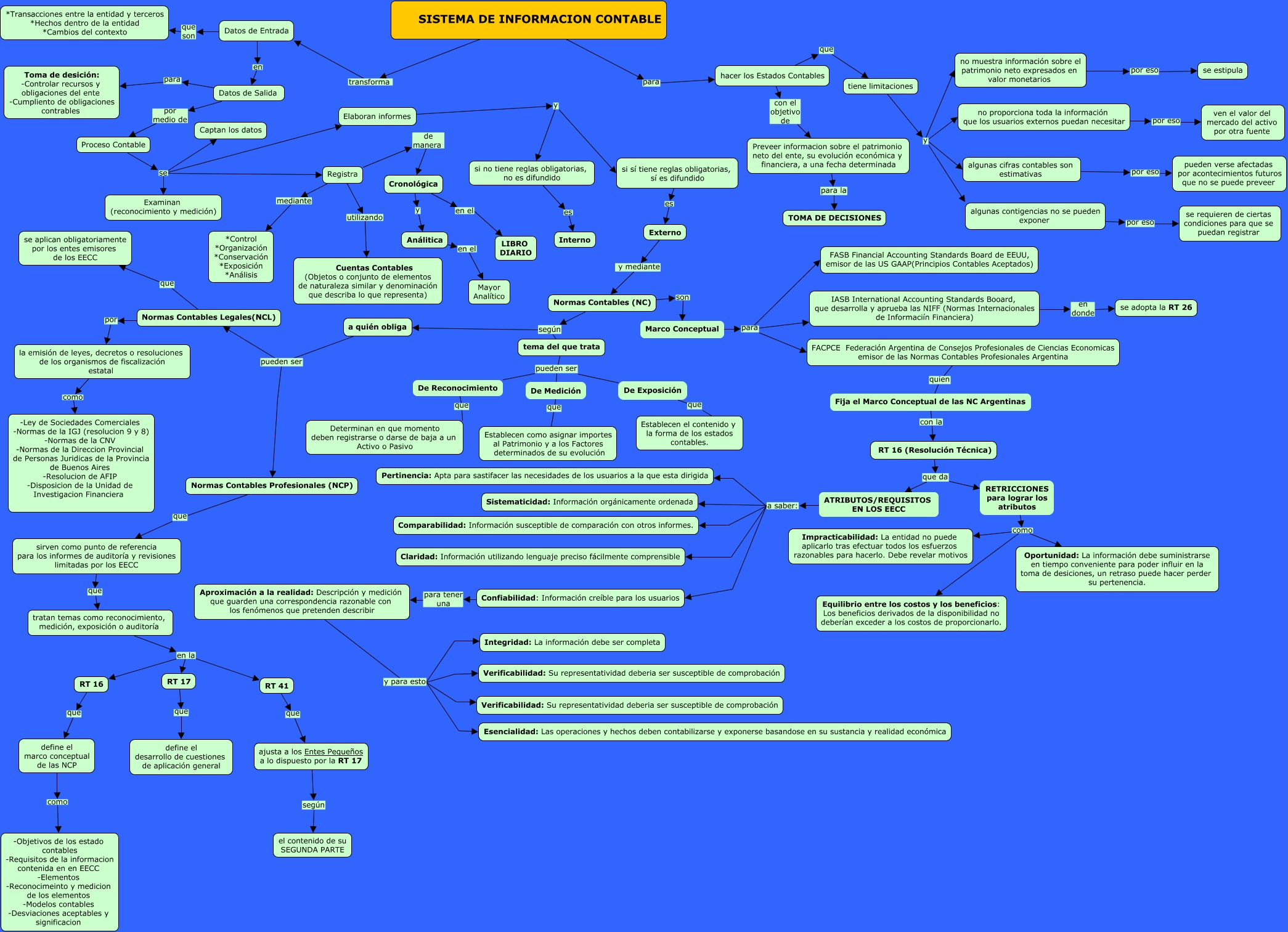 Este Cmap, tiene información relacionada con: Act1_Cmap_Contabilidad Intermedia_FP.cmap, Externo y mediante Normas Contables (NC), Aproximación a la realidad: Descripción y medición que guarden una correspondencia razonable con los fenómenos que pretenden describir y para esto Verificabilidad: Su representatividad deberia ser susceptible de comprobación, Confiabilidad: Información creíble para los usuarios para tener una Aproximación a la realidad: Descripción y medición que guarden una correspondencia razonable con los fenómenos que pretenden describir, Aproximación a la realidad: Descripción y medición que guarden una correspondencia razonable con los fenómenos que pretenden describir y para esto Esencialidad: Las operaciones y hechos deben contabilizarse y exponerse basandose en su sustancia y realidad económica, Normas Contables (NC) según tema del que trata, Cronológica en el LIBRO DIARIO, a quién obliga pueden ser Normas Contables Profesionales (NCP), tiene limitaciones y no proporciona toda la información que los usuarios externos puedan necesitar, SISTEMA DE INFORMACION CONTABLE transforma Datos de Entrada, Preveer informacion sobre el patrimonio neto del ente, su evolución económica y financiera, a una fecha determinada para la TOMA DE DECISIONES, hacer los Estados Contables que tiene limitaciones, Proceso Contable se Elaboran informes, Normas Contables (NC) son Marco Conceptual, a quién obliga pueden ser Normas Contables Legales(NCL), tratan temas como reconocimiento, medición, exposición o auditoría en la RT 16, Análitica en el Mayor Analítico, Elaboran informes y si no tiene reglas obligatorias, no es difundido, si sí tiene reglas obligatorias, sí es difundido es Externo, RETRICCIONES para lograr los atributos como Oportunidad: La información debe suministrarse en tiempo conveniente para poder influir en la toma de desiciones, un retraso puede hacer perder su pertenencia., Datos de Salida para Toma de desición: -Controlar recursos y obligaciones del ente -Cumpliento de obligaciones contrables